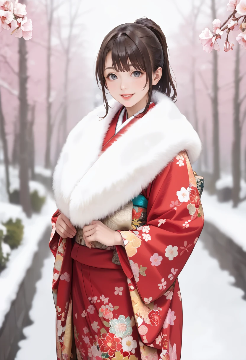 トリガーワード: furisode with fur, furisode, kimono, fur