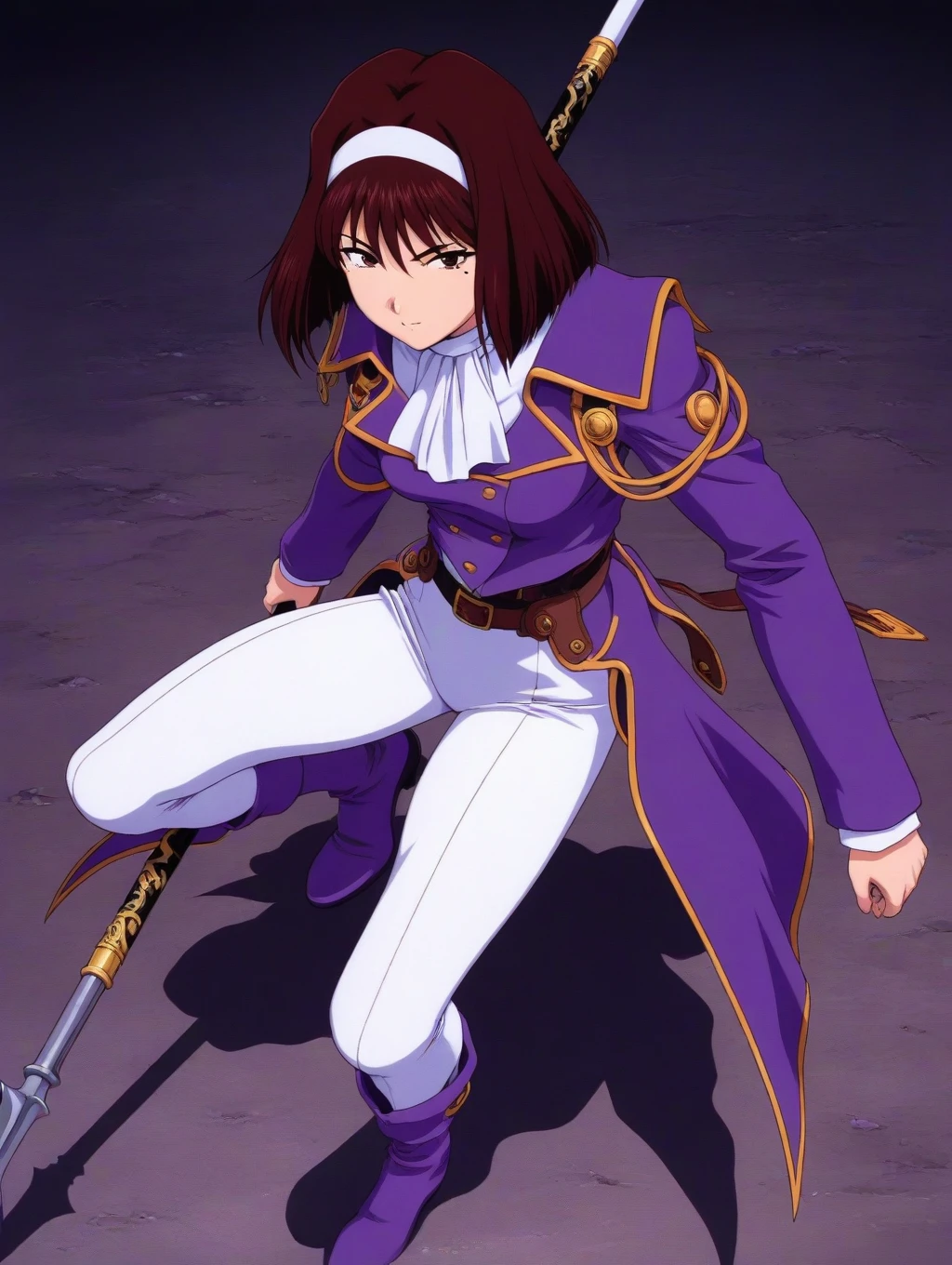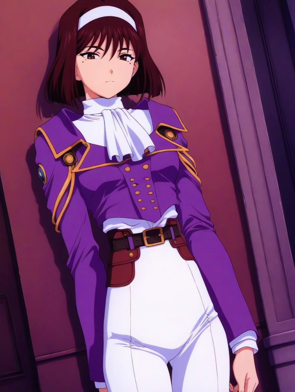 purple uniform,white pants, white ascot,belt,
