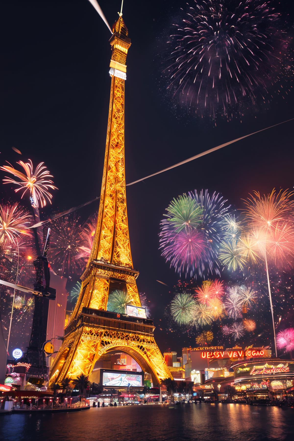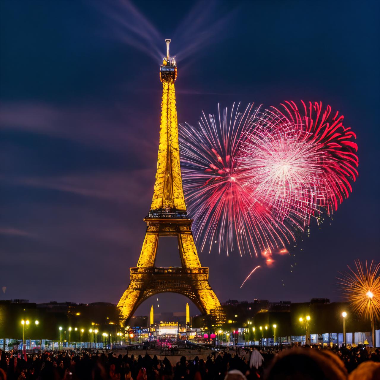 <lora:eiffel_tower_v1:1.0> eiffel_tower, eiffel tower, paris, by night, from below, bastille day, national day, fireworks