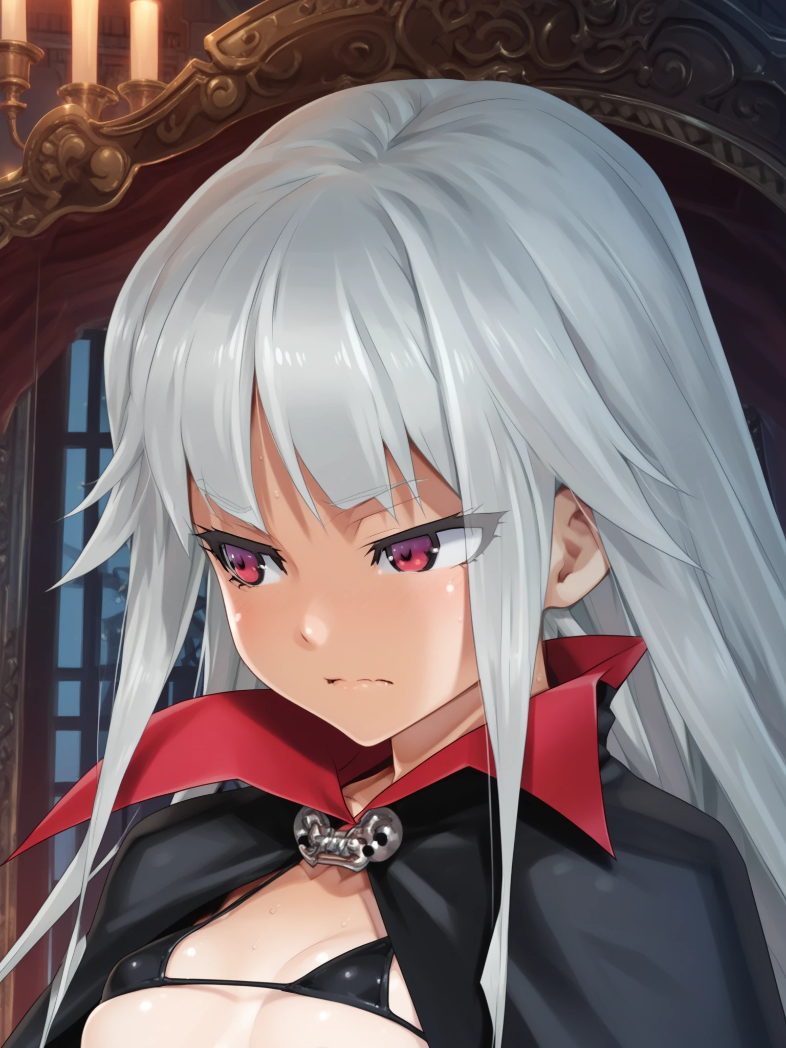 • Black bikini: red eyes, black bikini, cape, black gloves