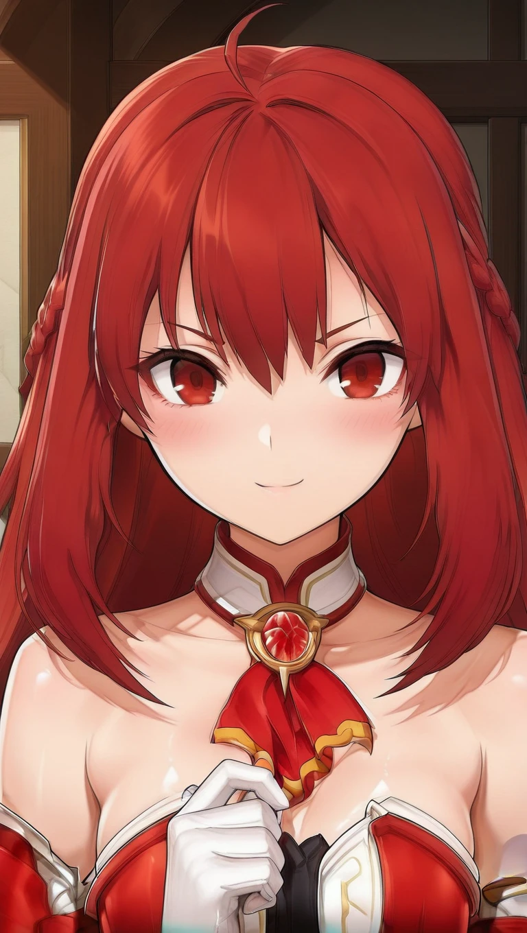 ahoge,very long hair,red hair,half updo,braid,red eyes
