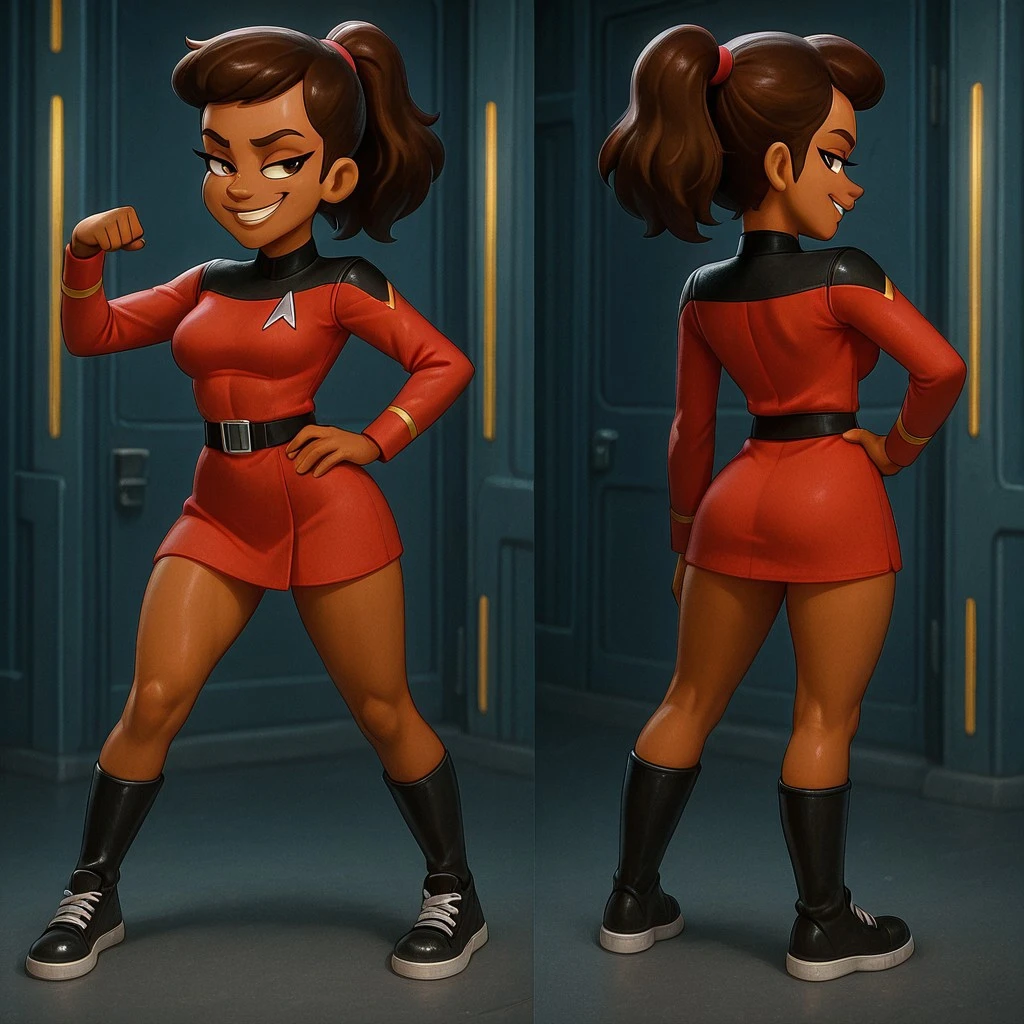 In her wild youth she sniffed paint thinner once too often, since then her facial expressions have stuck so that her look always has something daring about it. She also has a stubborn sneaker fetish that you just can't get rid of, so if you don't like it you shouldn't use her above 0.7