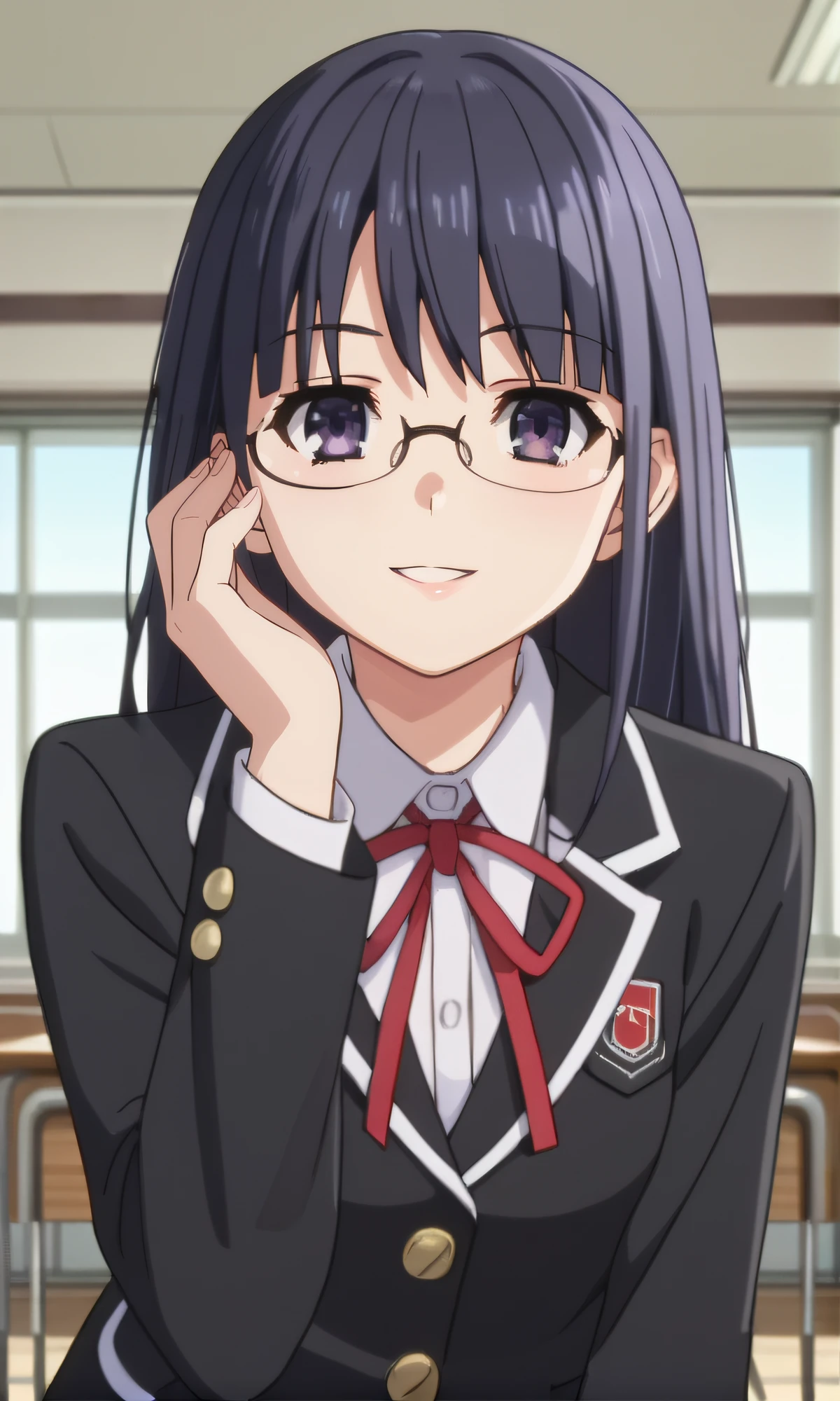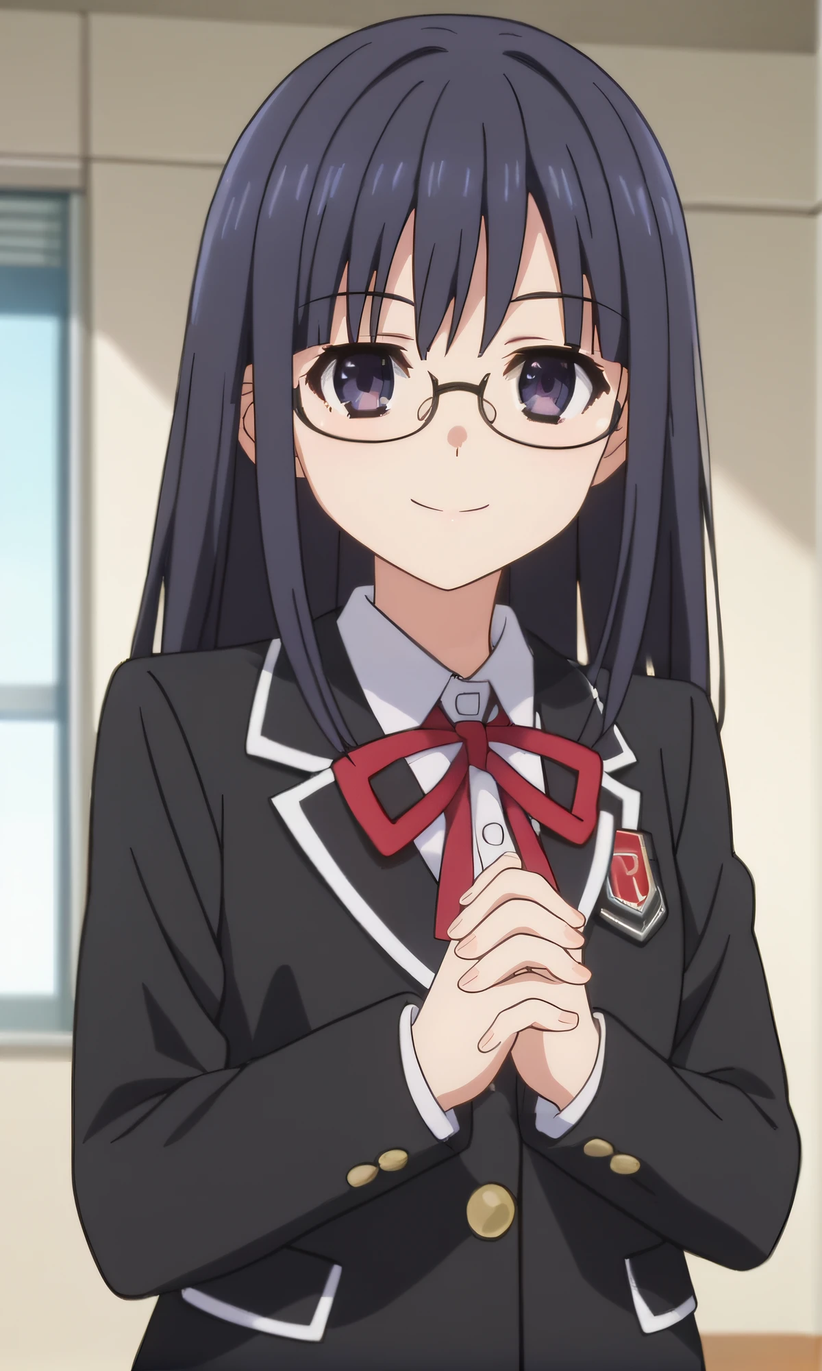 school uniform, white shirt, black blazer, pleated skirt, blue skirt