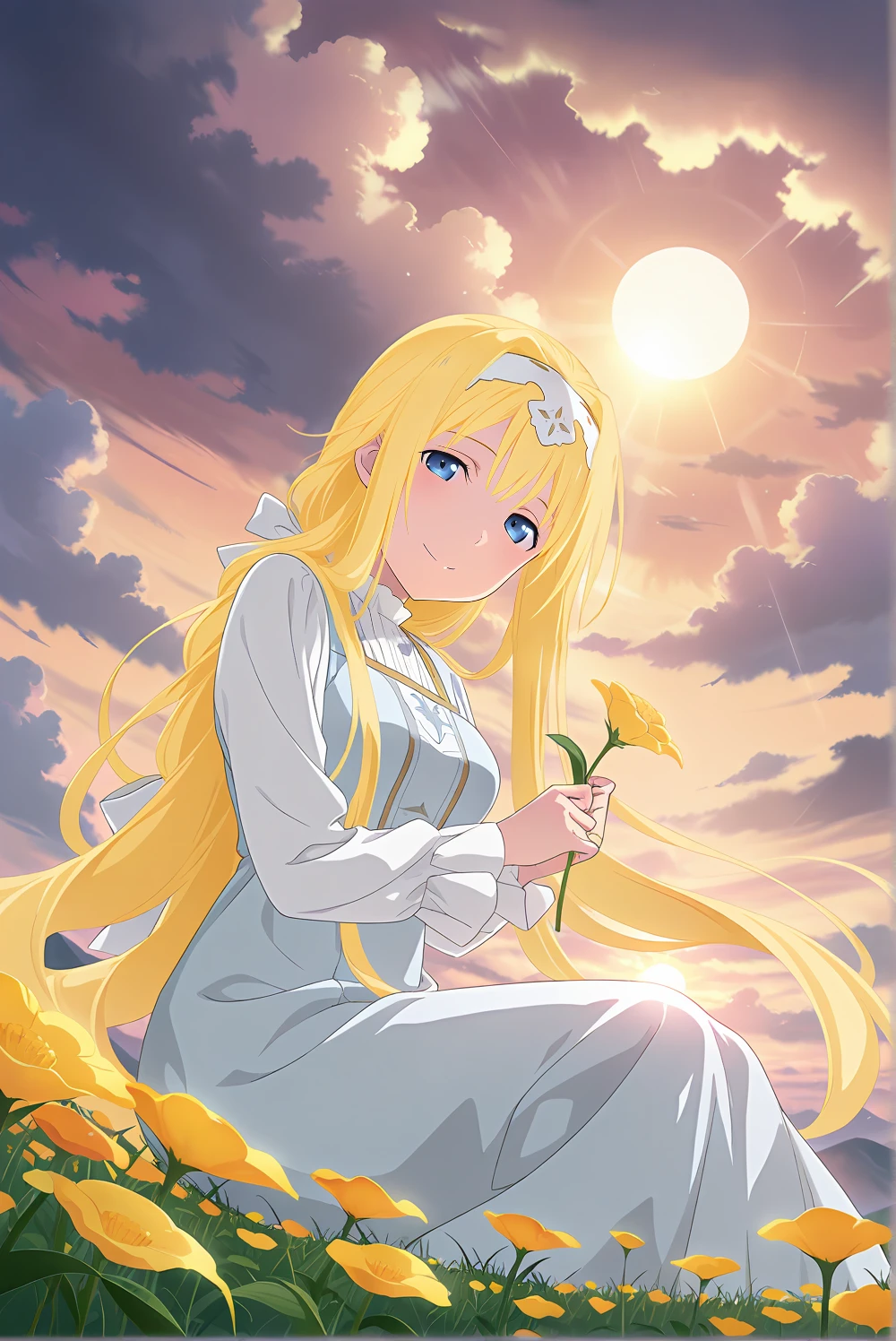 alice_(character), 1girl, mature, blue eyes, blonde hair, long hair, very long hair, white hairband