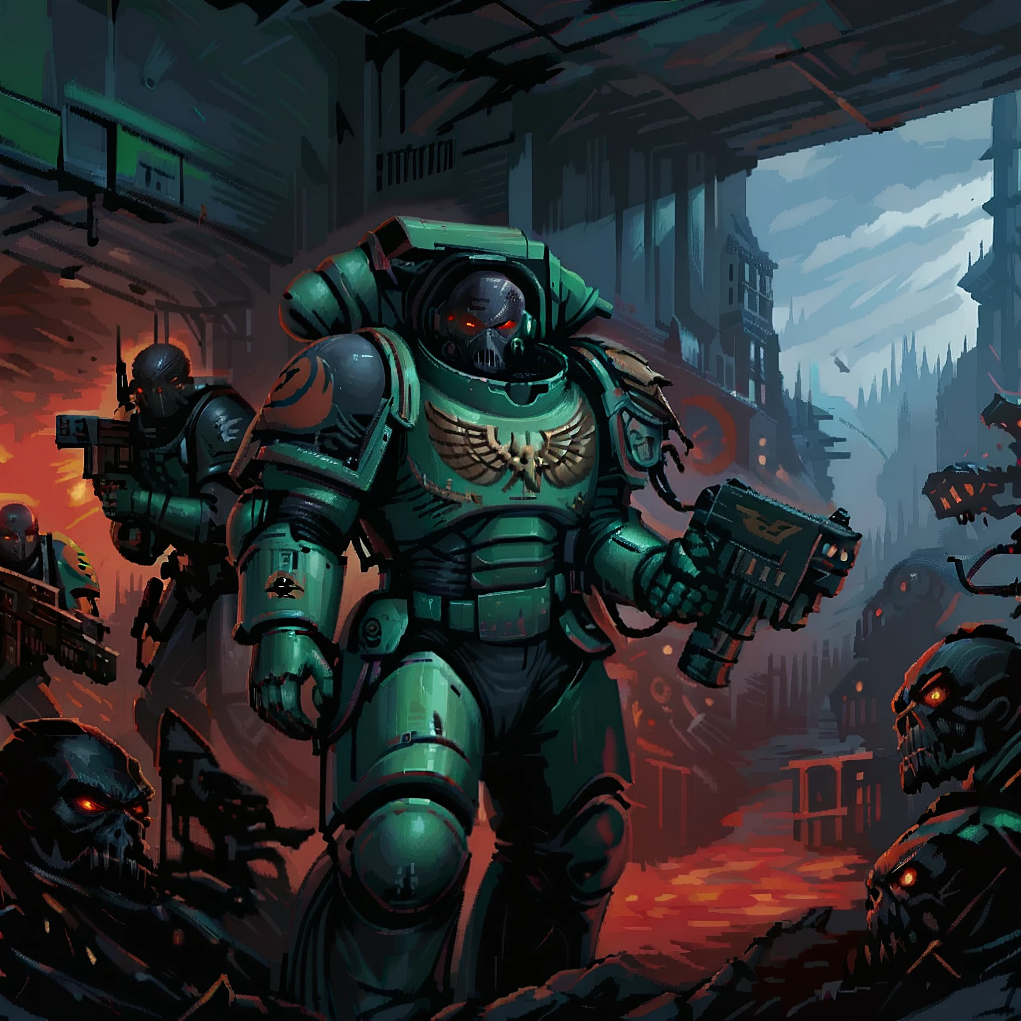 The Tech-Priests of Mars have recently deployed an advanced cogitator model capable of generating highly detailed visio-representations of the Salamanders Space Marine Chapter. Codenamed "Vulcan's Forge," this device utilizes noospheric data channels to construct accurate visualizations of the Salamanders in various theatric scenarios, including battle formations, weapon discharges, and distinct iconography related to their Chapter.