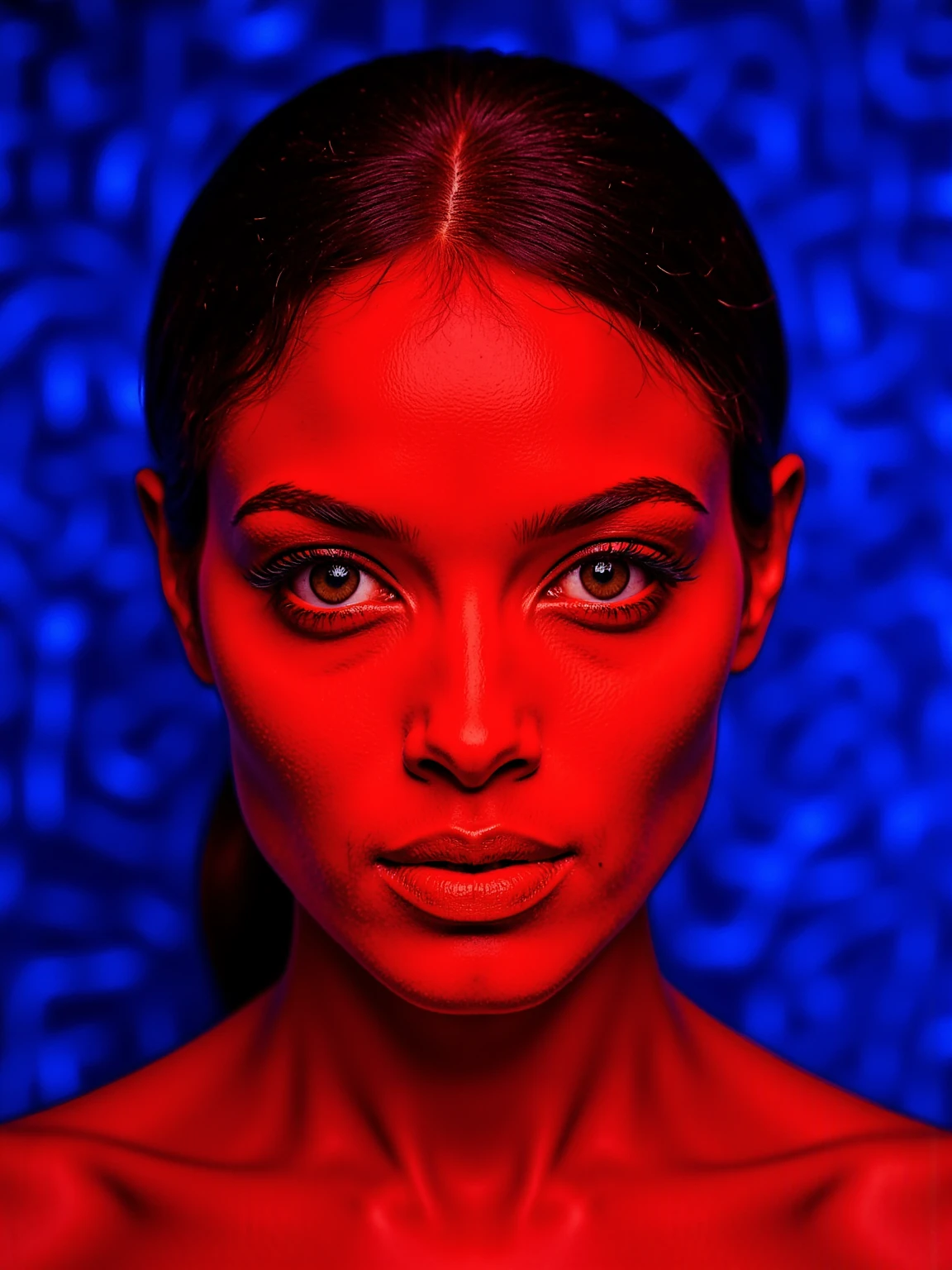 Works better with a simple description of the effect. "A red sharp foreground front of a blurry blue background". Dont forget to play with contrasts to produce the "3D effect" with vivid warm color against dark cold colors. Be creative!
