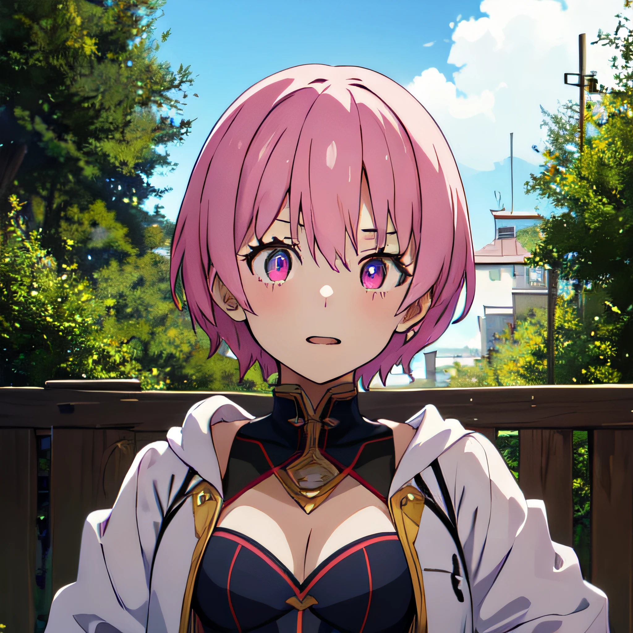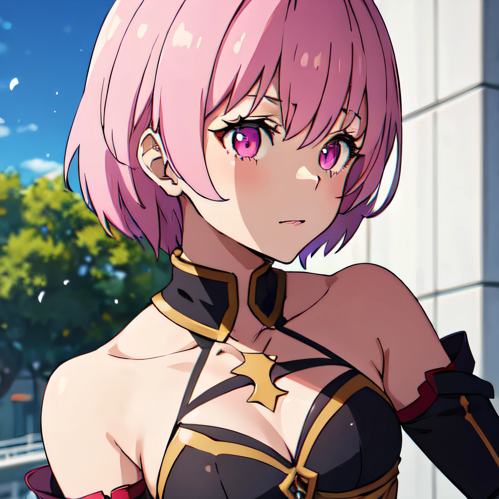 Use the keywords "bare shoulders" and/or "detached sleeves" for resemblance of her outfit as a Pillar.