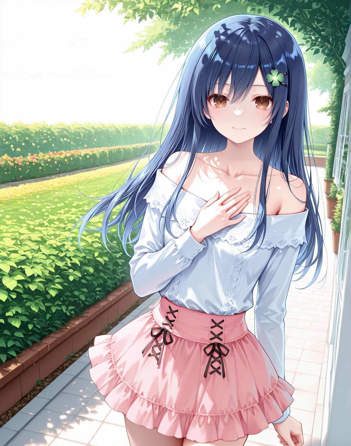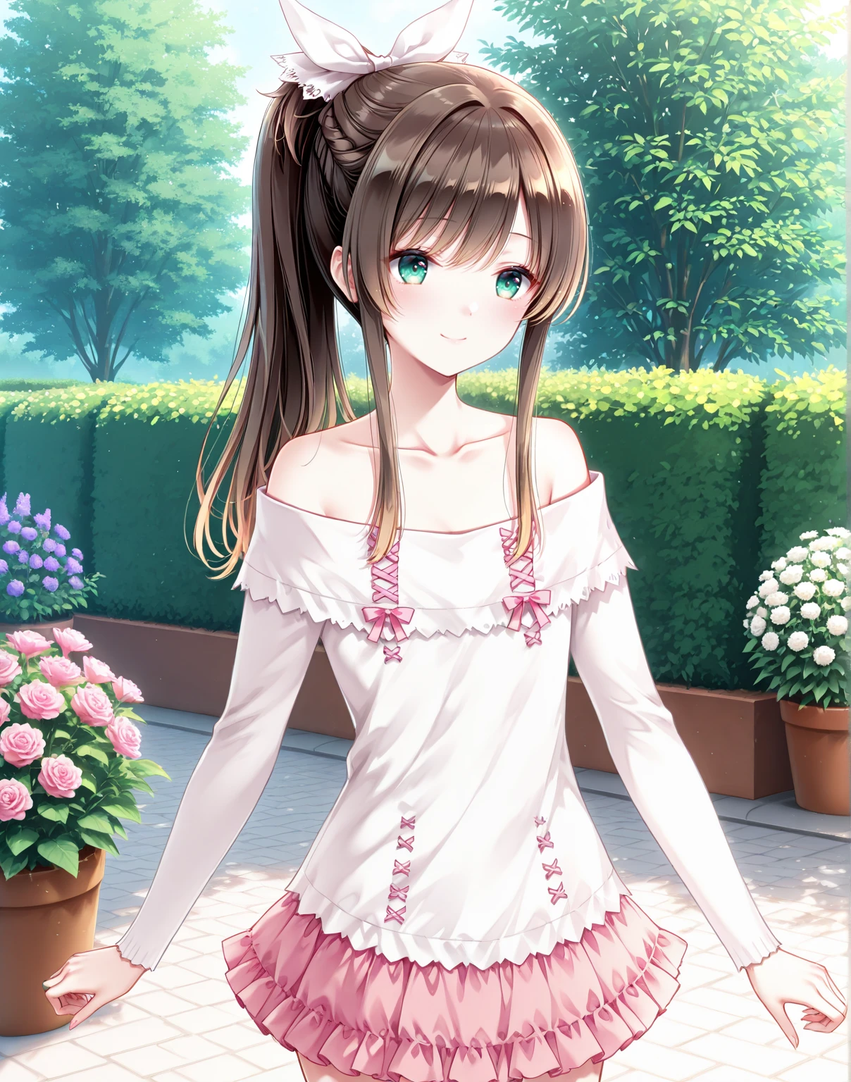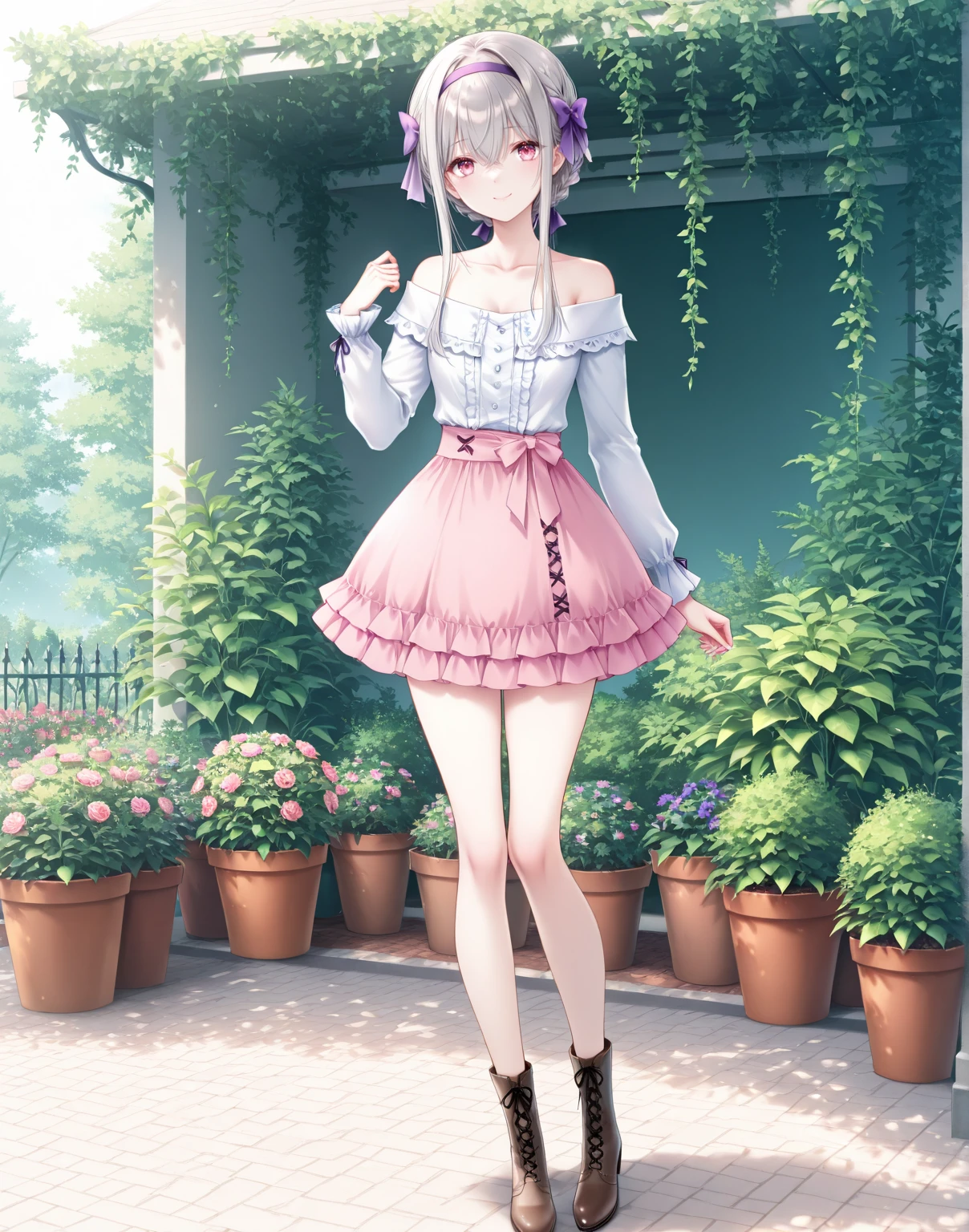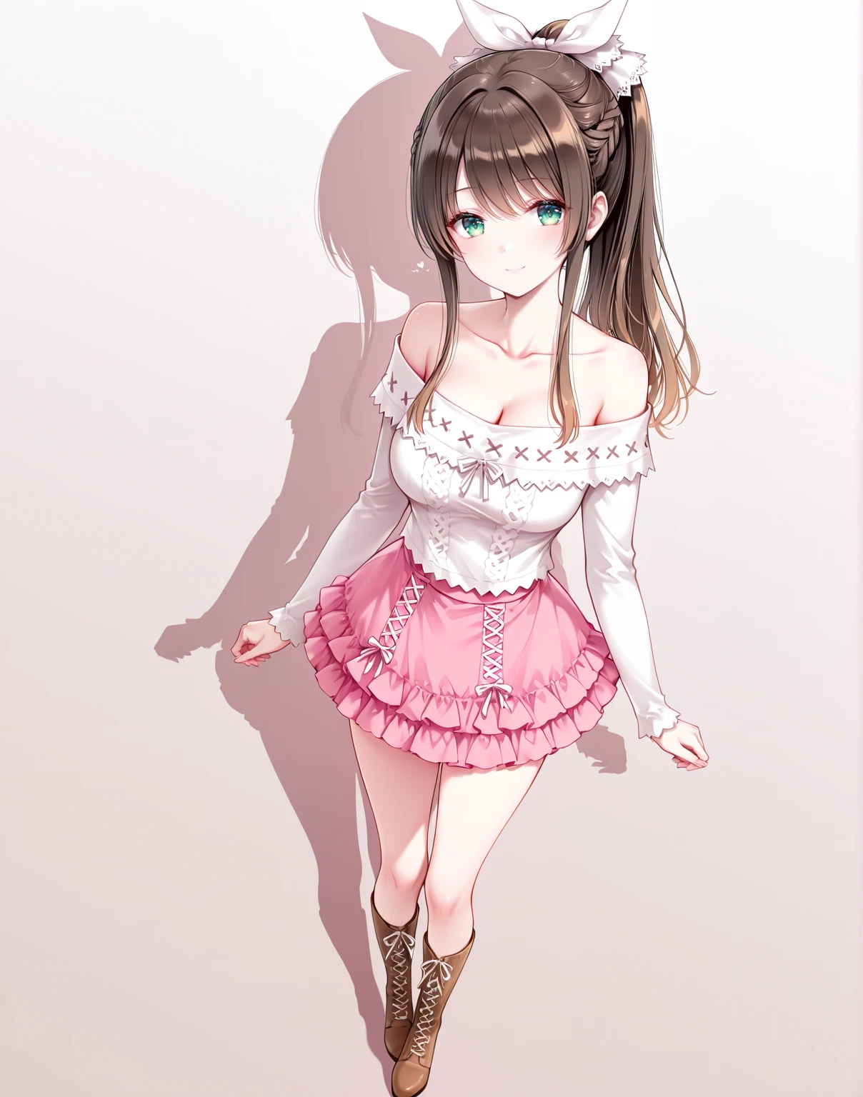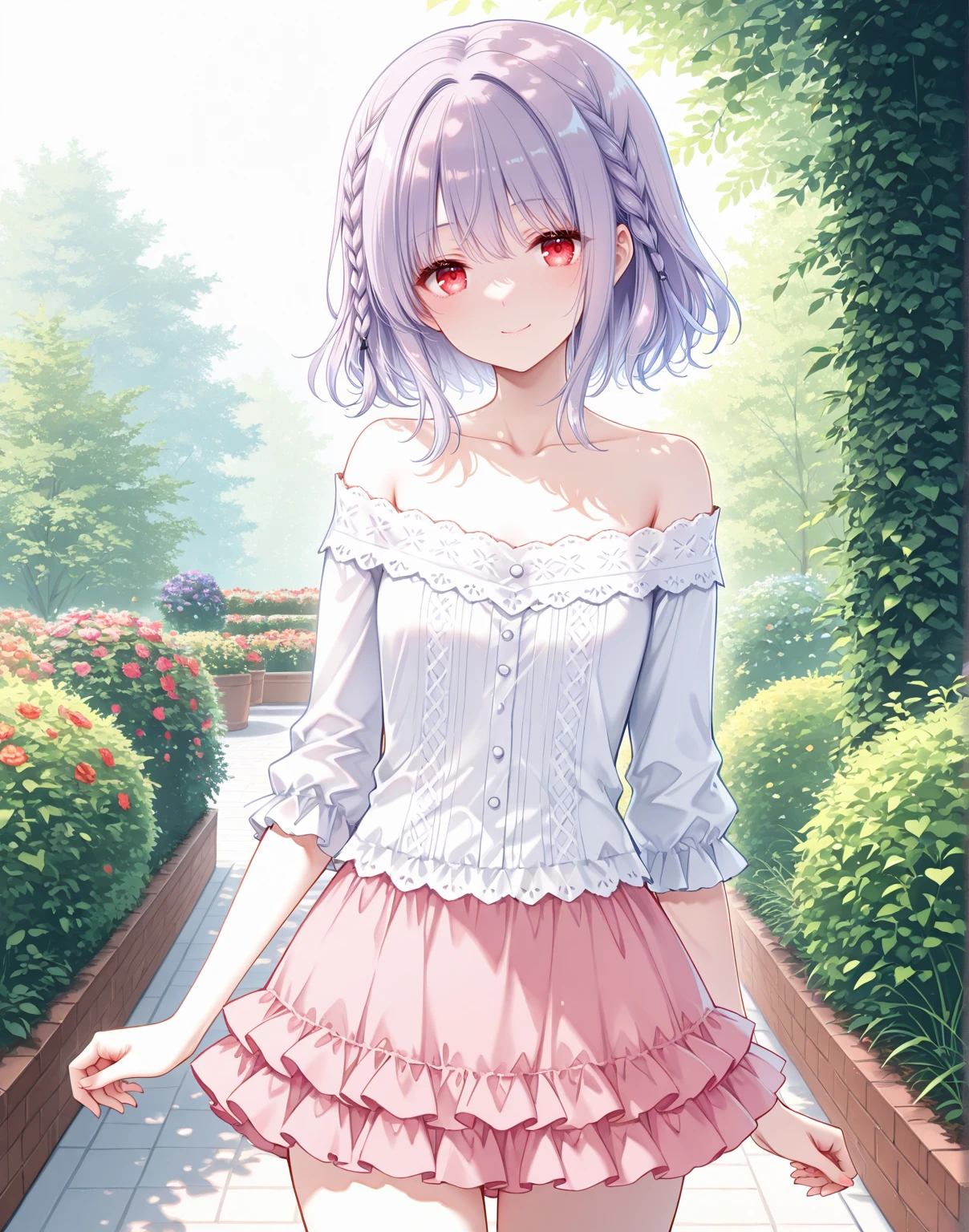 offshirt,off-shoulder shirt,collarbone,miniskirt,pink skirt,layered skirt,