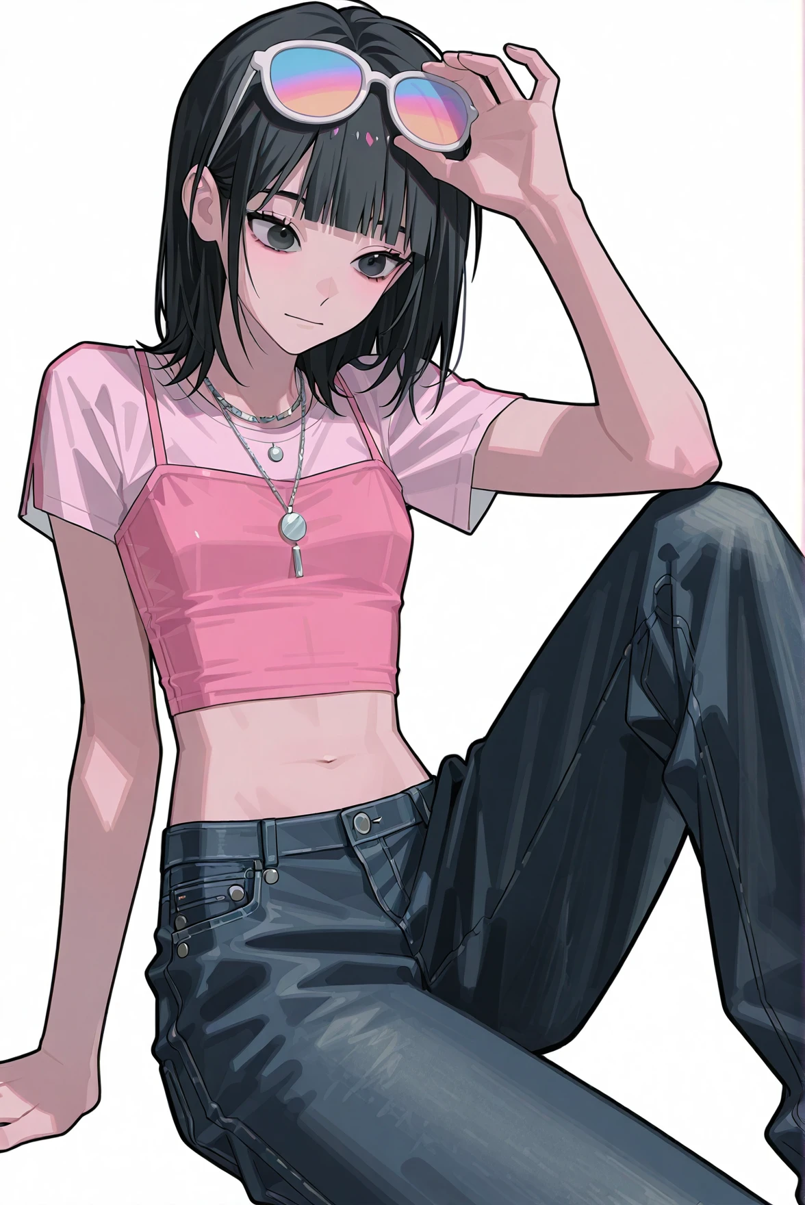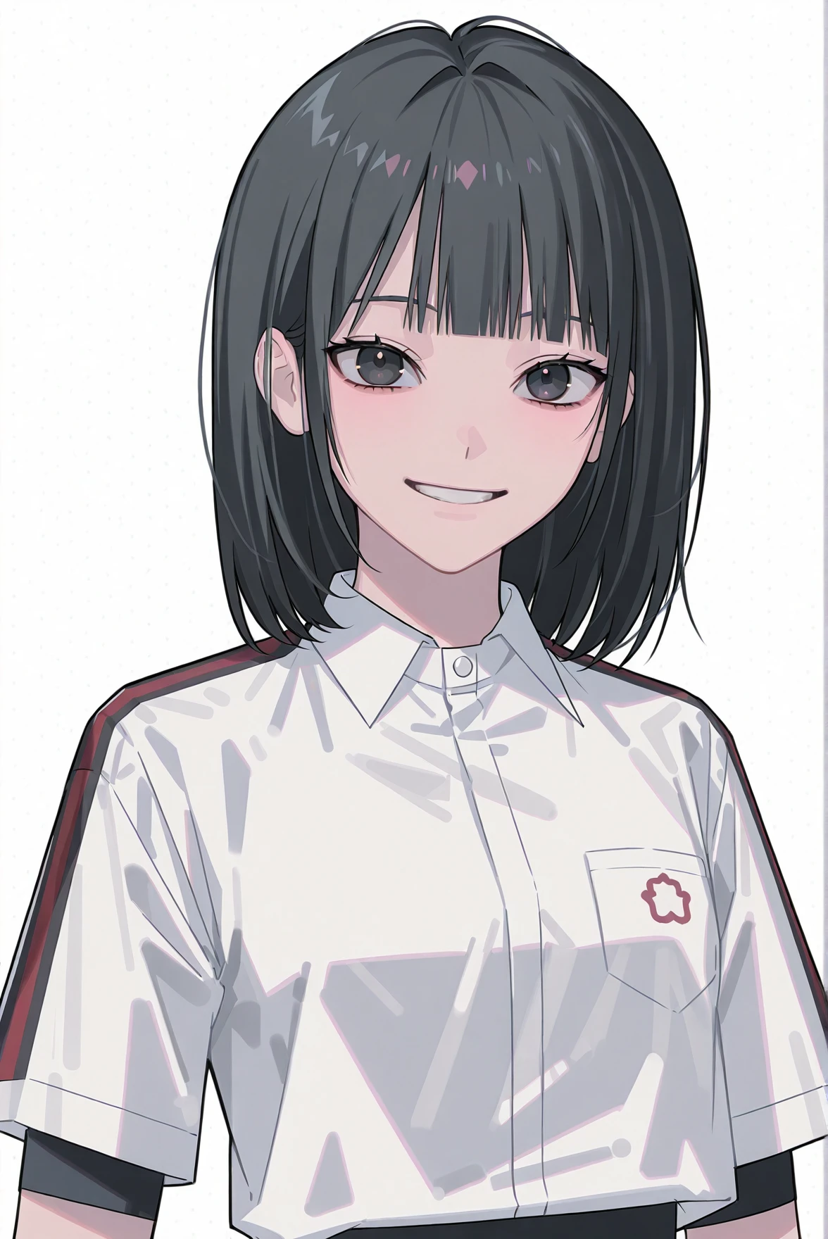 prompt: medium hair, black eyes, blunt bangs, black hair