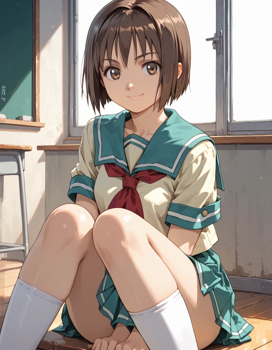 rika, brown hair, school uniform, short hair, brown eyes, kneehighs, serafuku, bob cut, Hey there, fellow creators! No need for donations – instead, drop me a line with your thanks or thoughts; it's the real treasure here! 🌟 And guess what? If this Lora helps you craft something amazing, don't hold back – spread the brilliance! 🔥