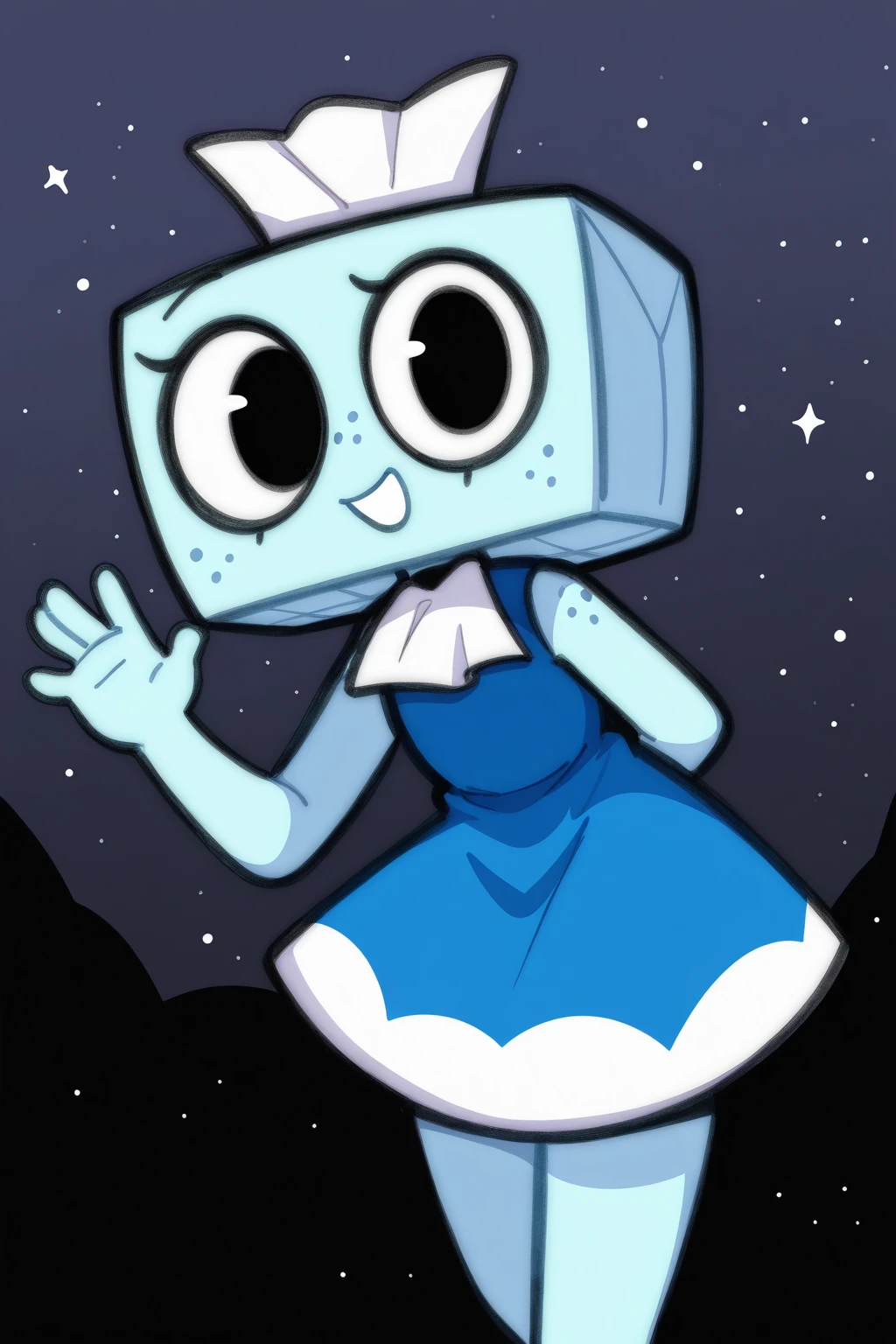 Helpful: anthro, object head, tissue box head, dress, dress collar, freckles,