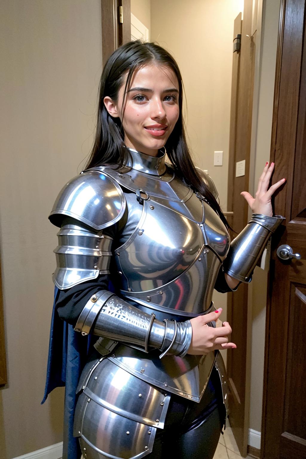 The pictures are a workaround for Civitai TOS. The pictures you get from the LoRa are usually much closer to what she usually wears.