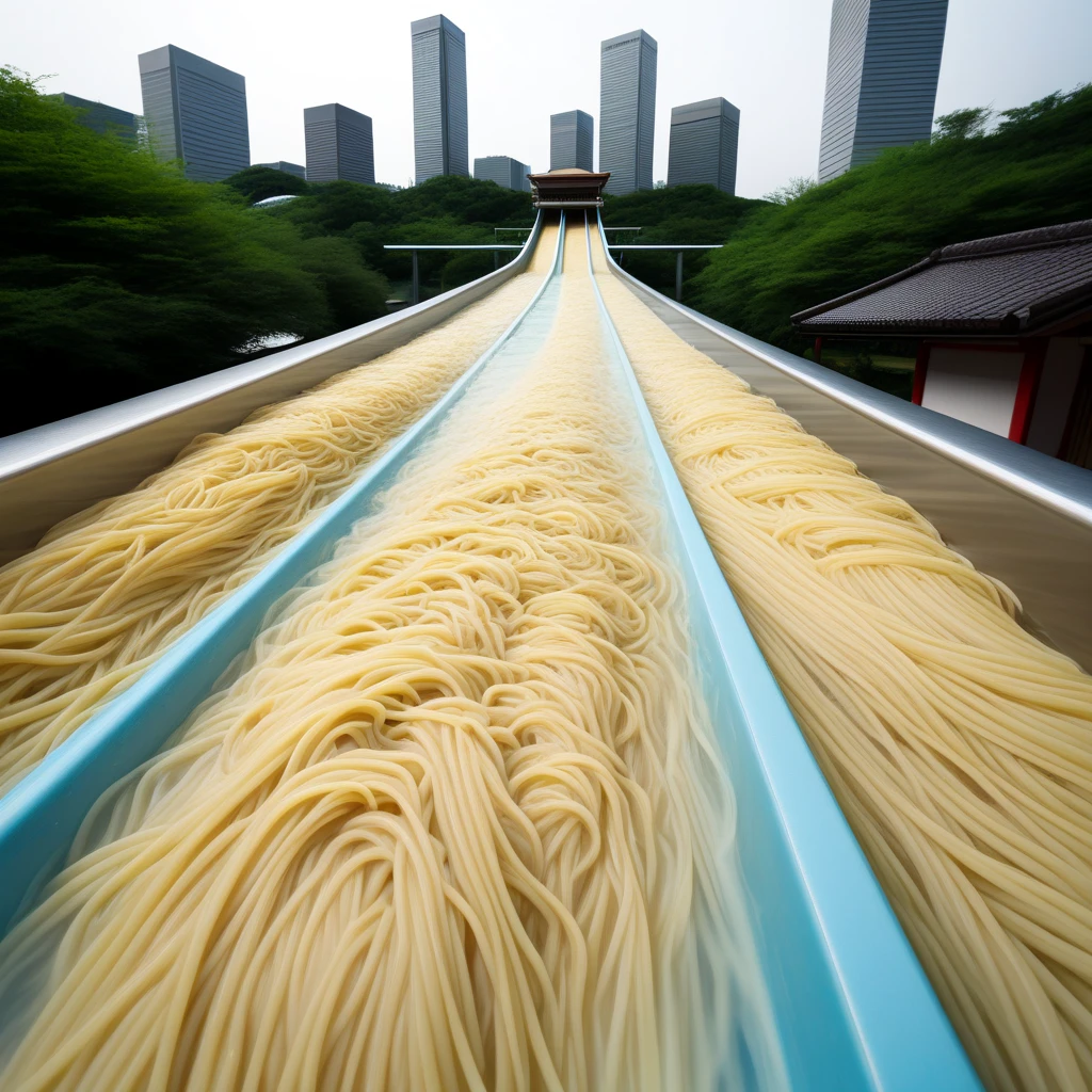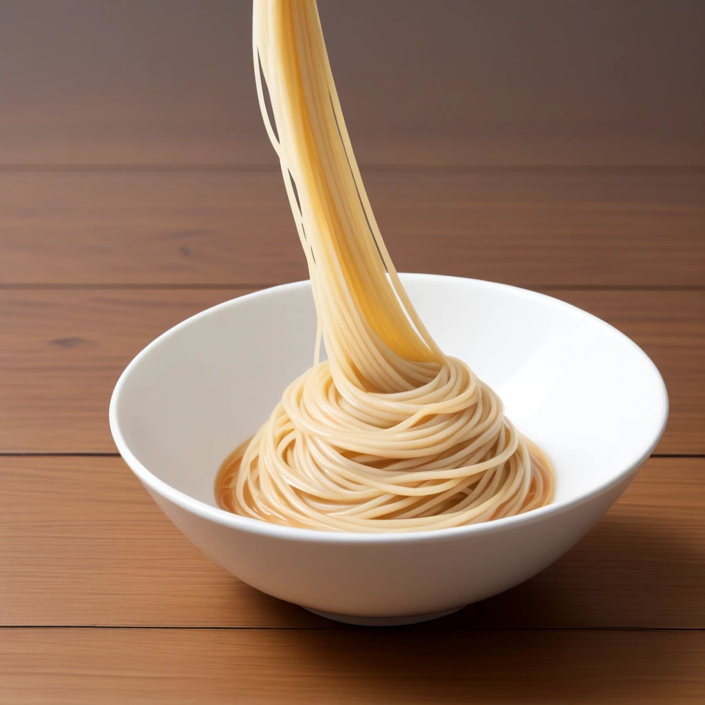 Spaghetti and somen noodles have different production methods. Spaghetti is made by mixing semolina with water, eggs, salt, and olive oil, and then extruding the dough through a machine.