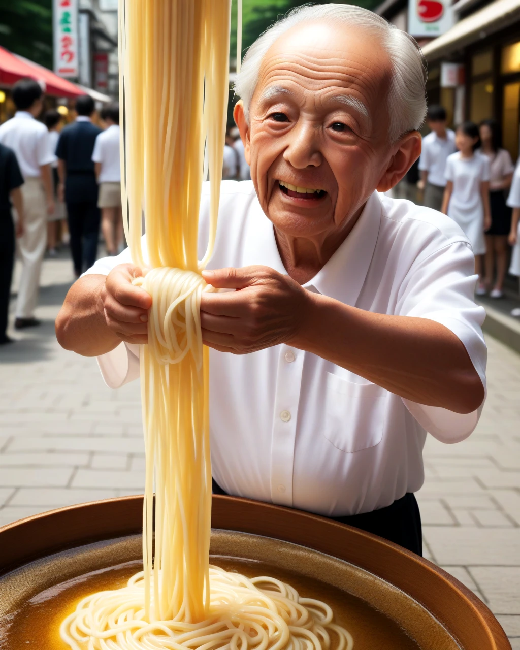 Soumen is made by mixing flour with salt water, kneading the dough, and then stretching it by hand into thin strands.
