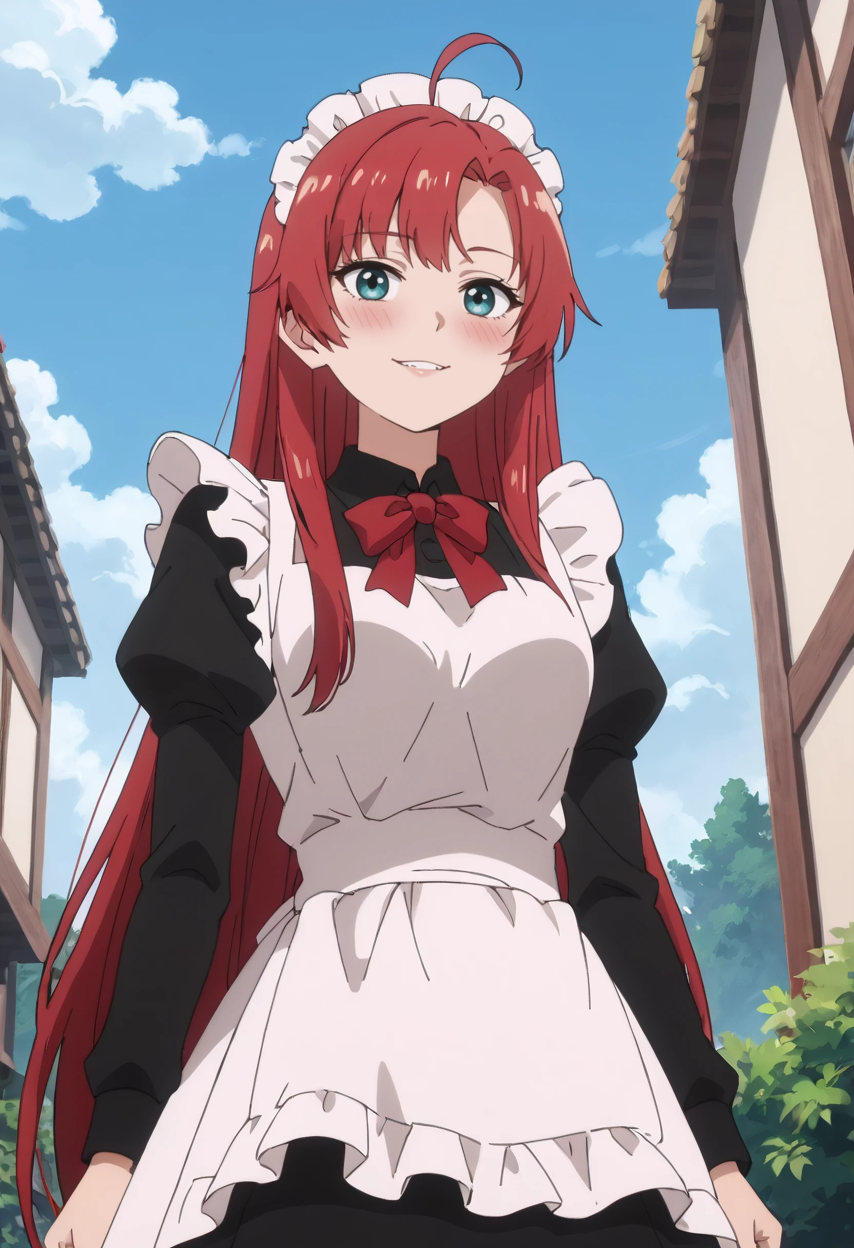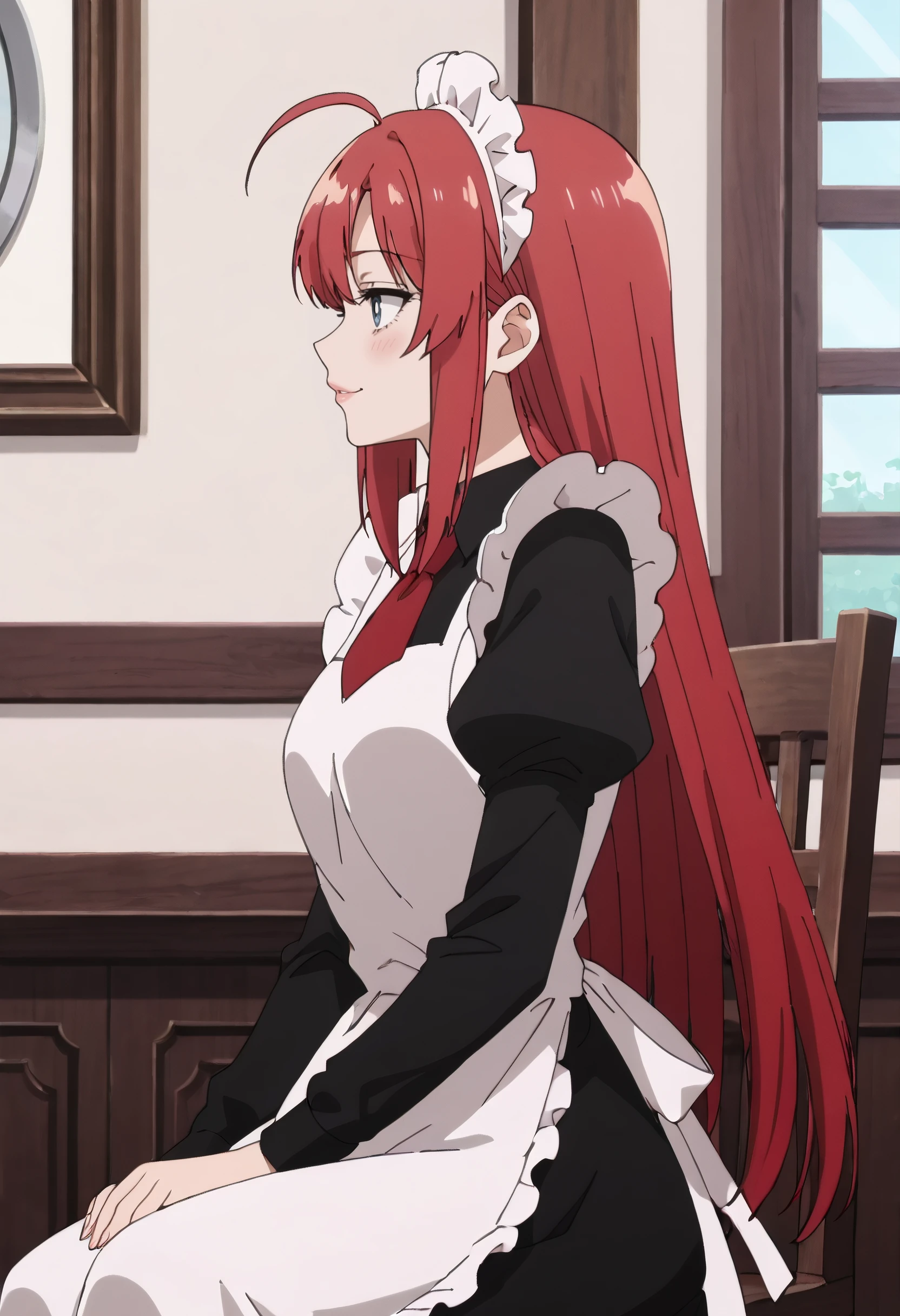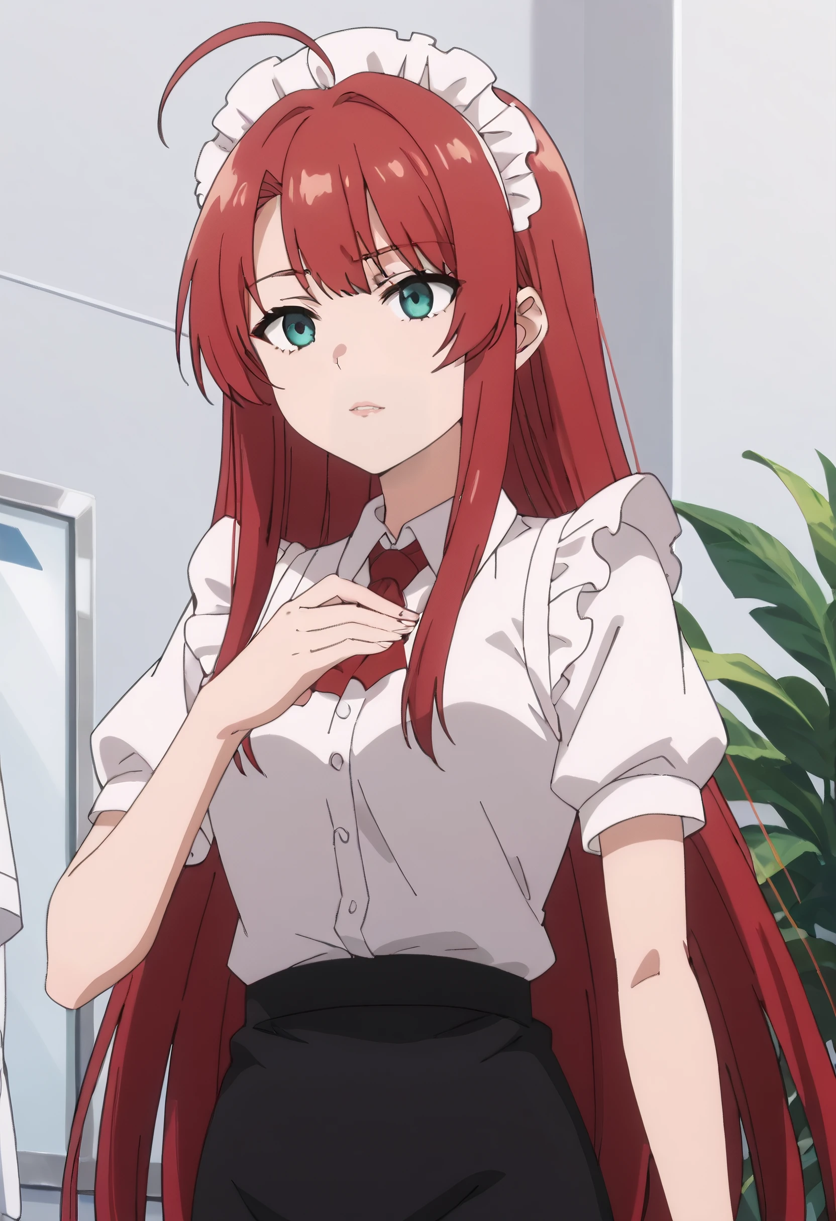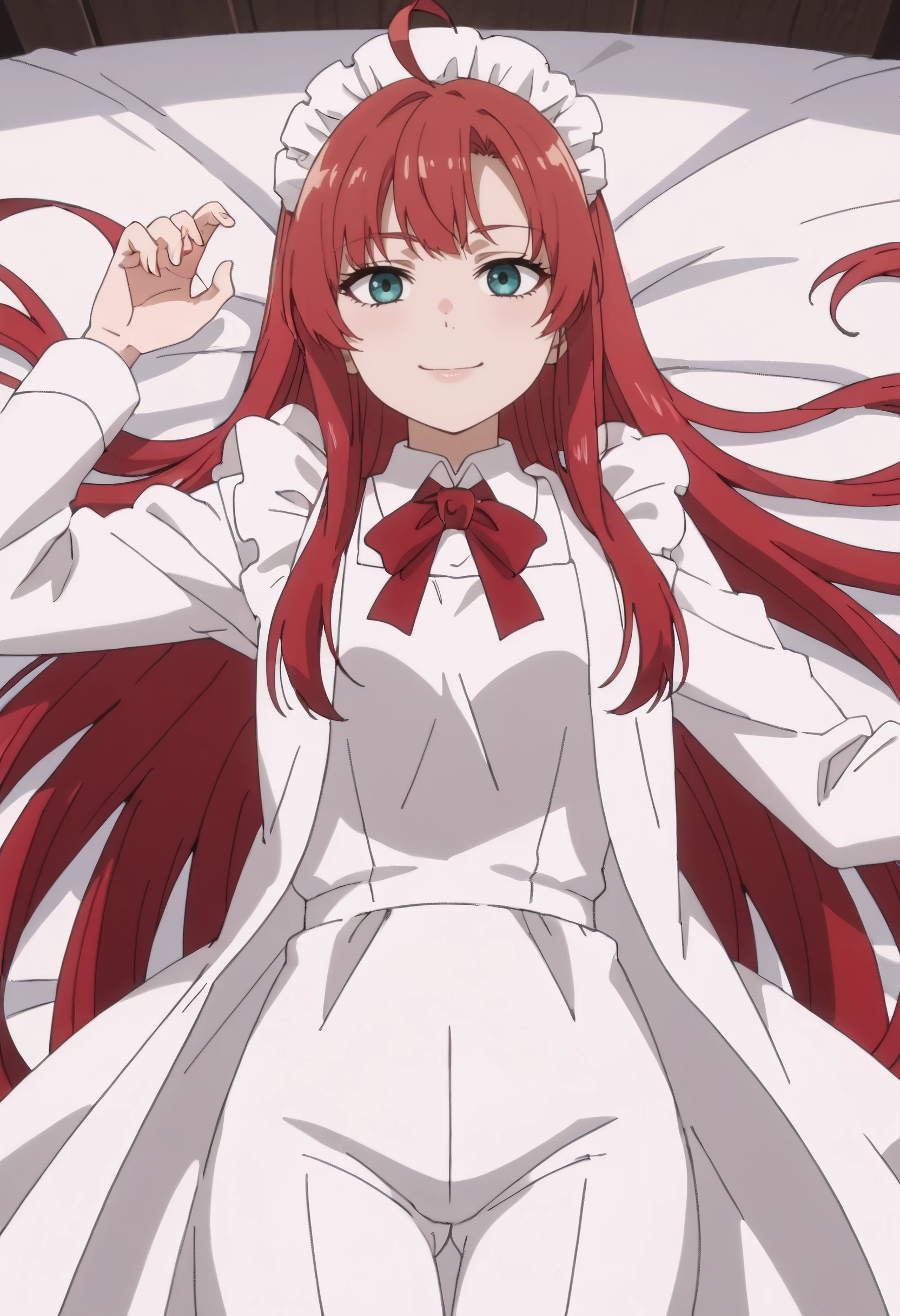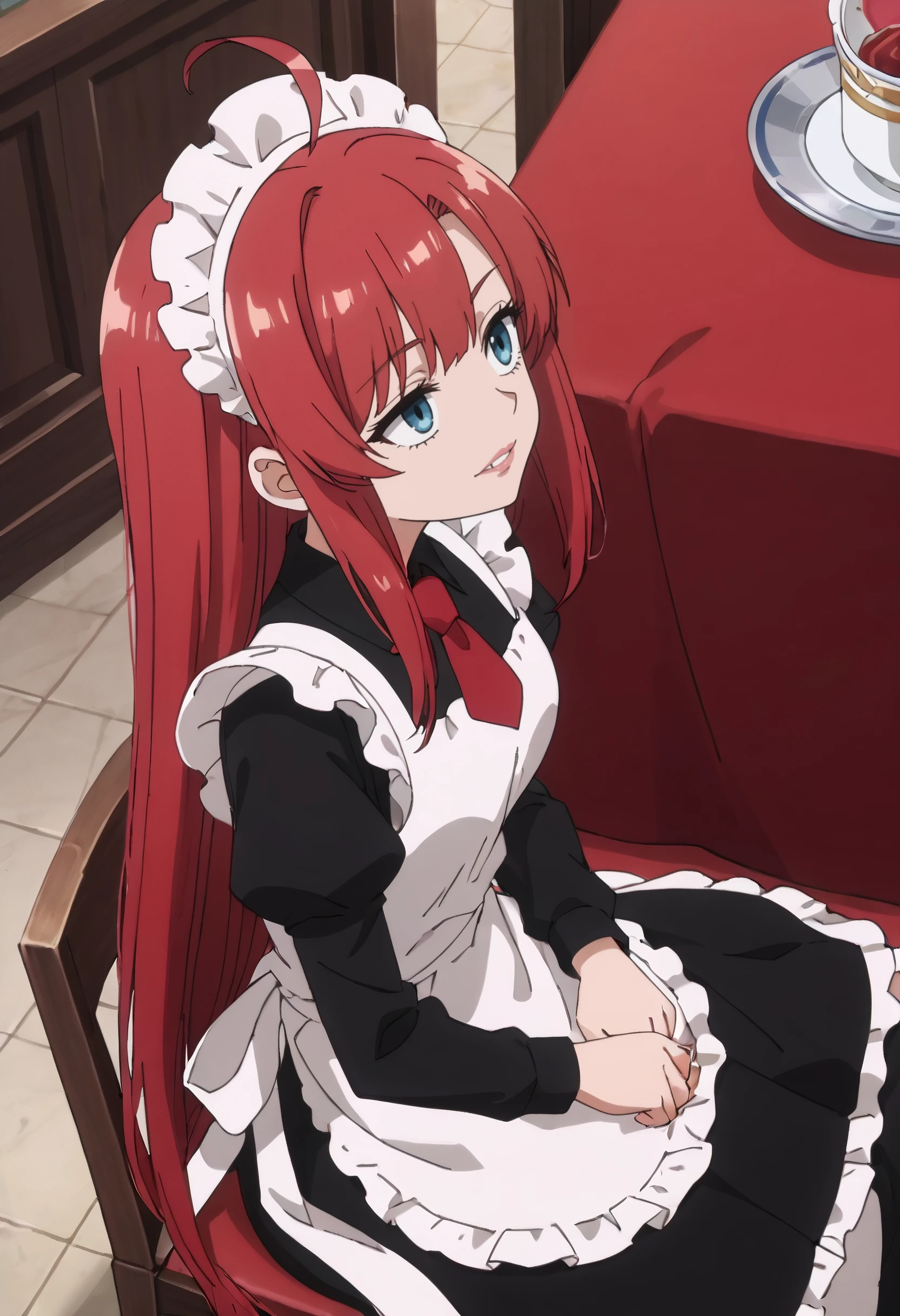 A4ORedMaid, long hair, red hair, eyebrows visible through hair, very long hair, bangs, ahoge,