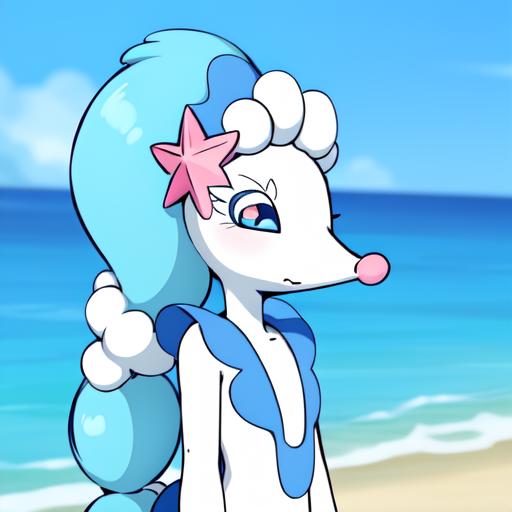 Primarina trained in Dreambooth 100 steps per image on 33 various NSFW works including a turnaround of a model imported into SFM, no class images, default training rate. Used FurryVixens_v20 as base.