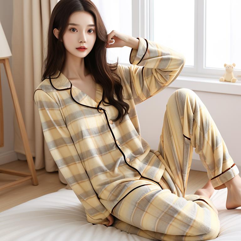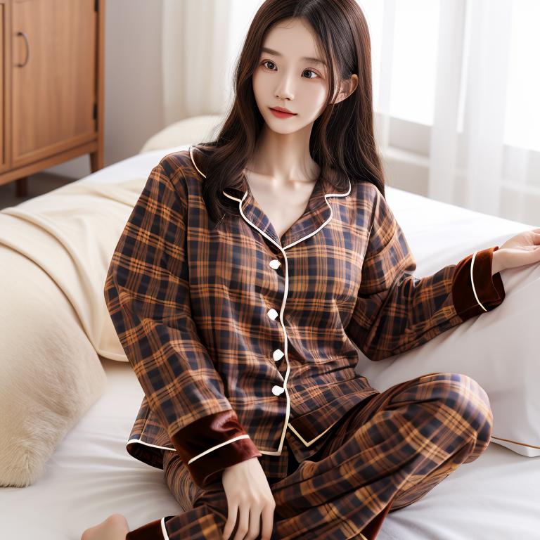 这是一个简单女性睡衣lora,可以帮助你生成纯色、格子及圆点款式睡衣。