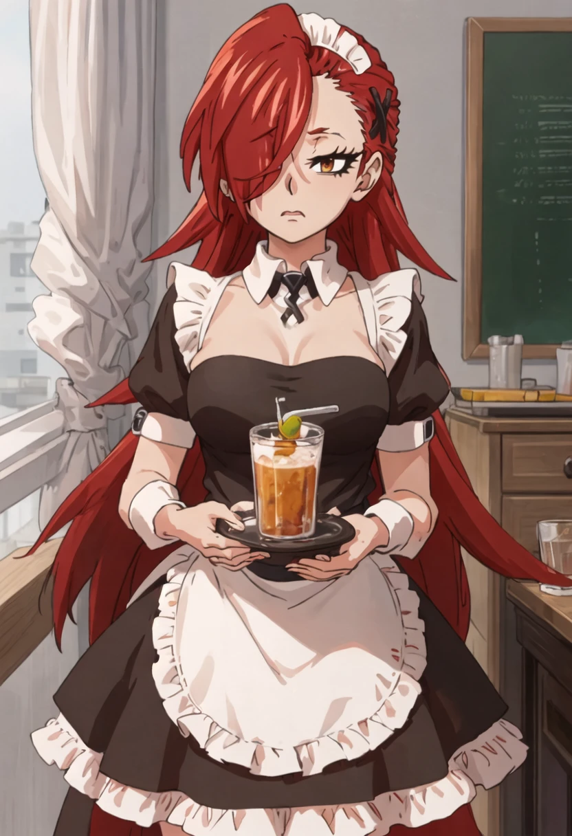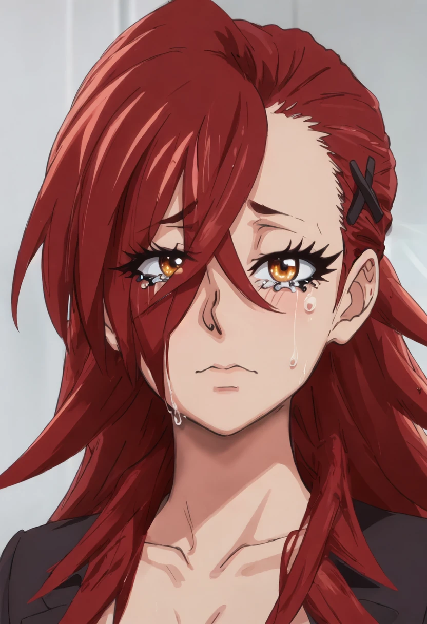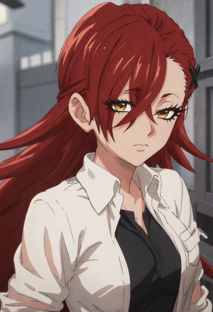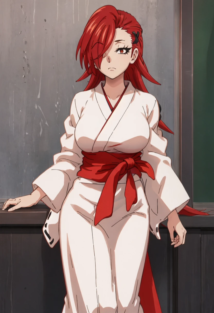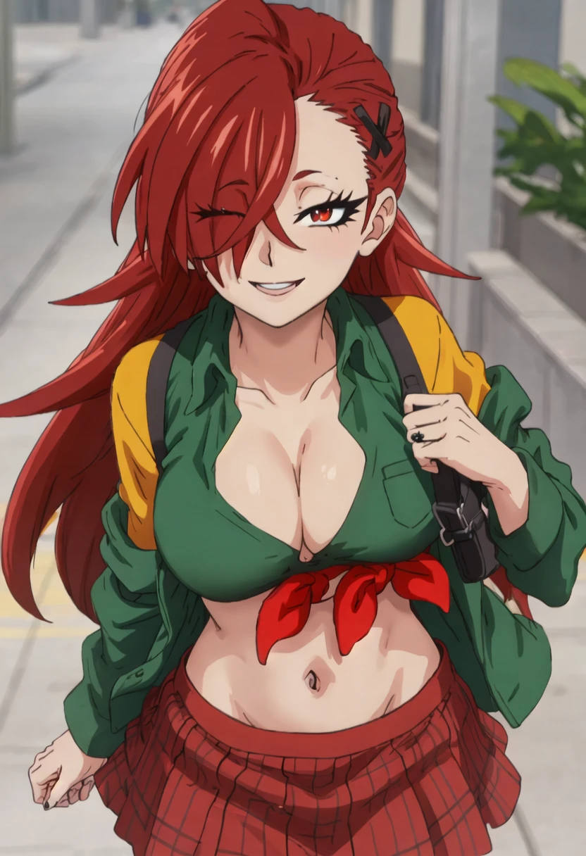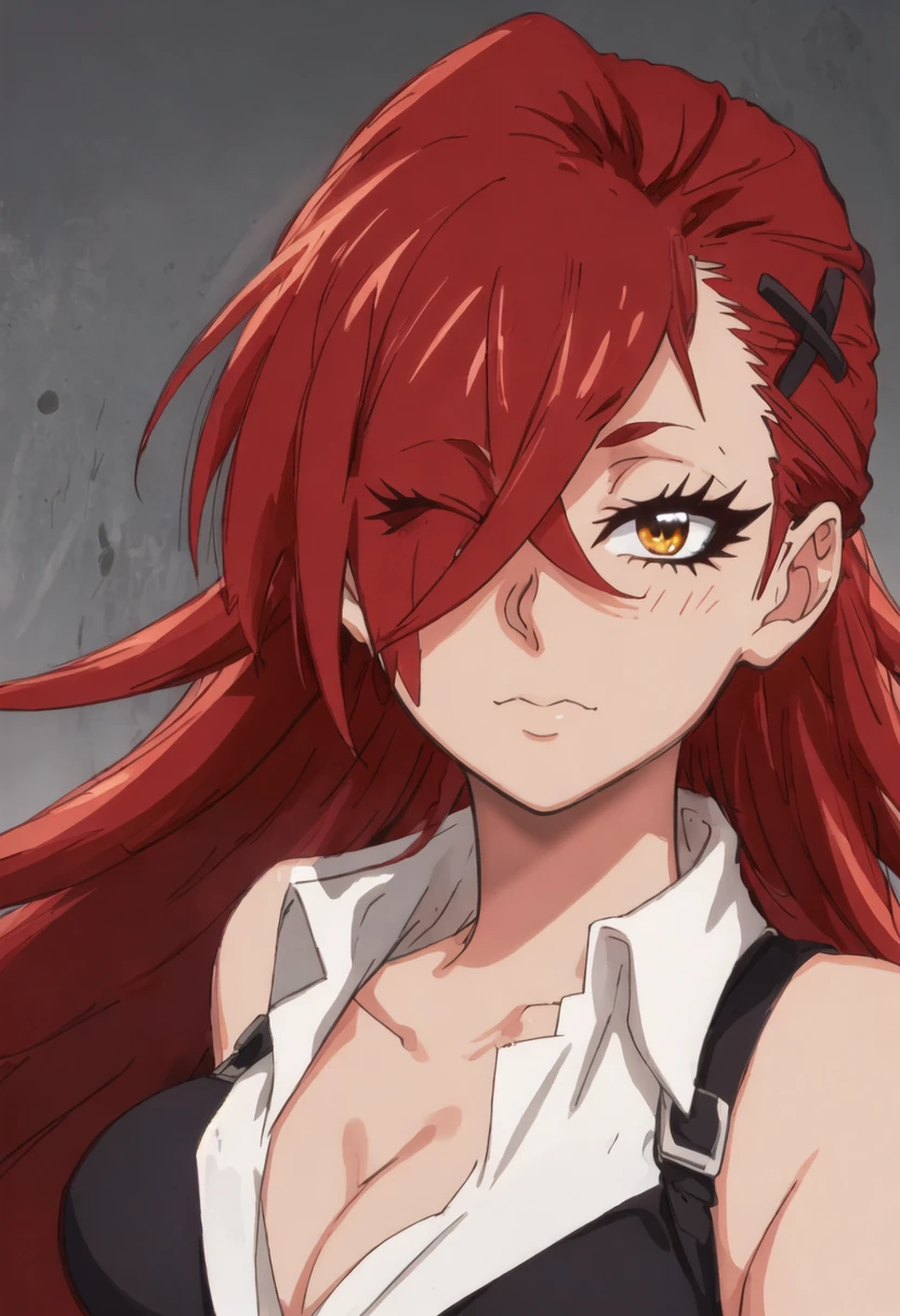 - The pruned character tags are red_hair, long_hair, hair_over_one_eye, hair_ornament, breasts, large_breasts. You can add them into prompts when core features (e.g. hair color) of character is not so stable.