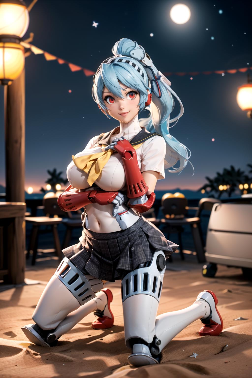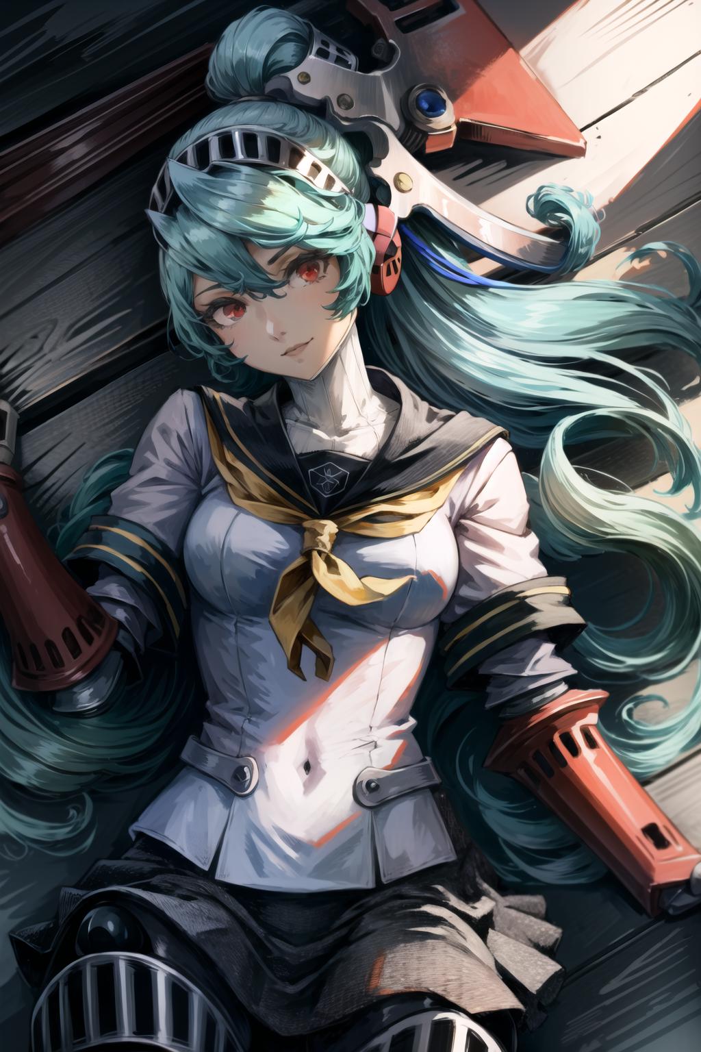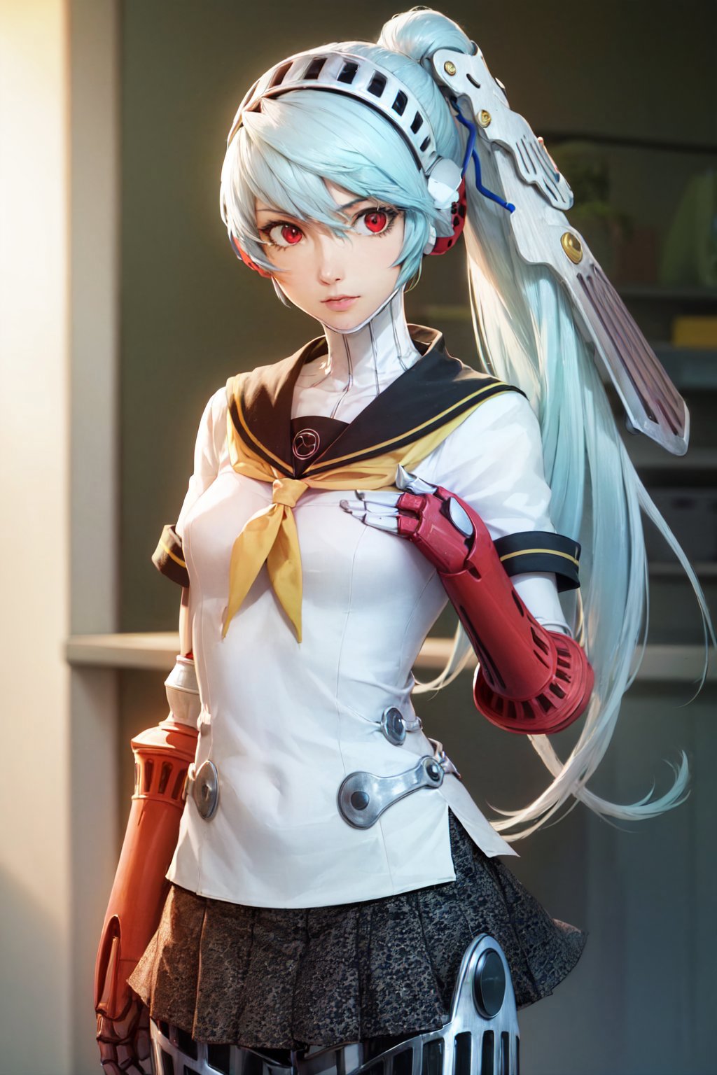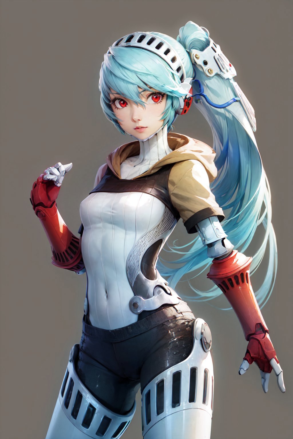 Trigger + Appearance: labrys, android, robot joints, joints, ponytail, red eyes
