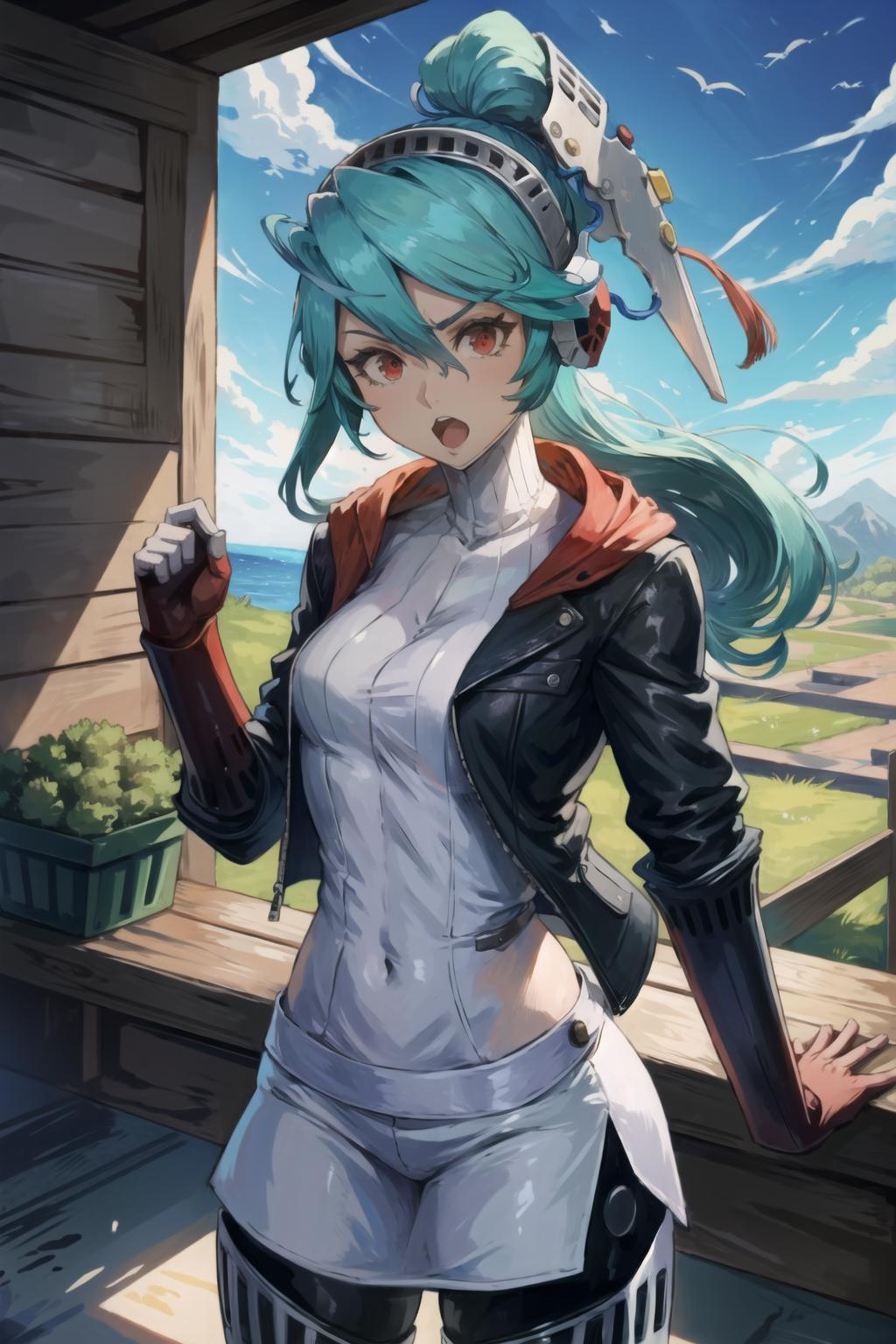 Add blue hair if necessary. You can prompt her yellow eyes.