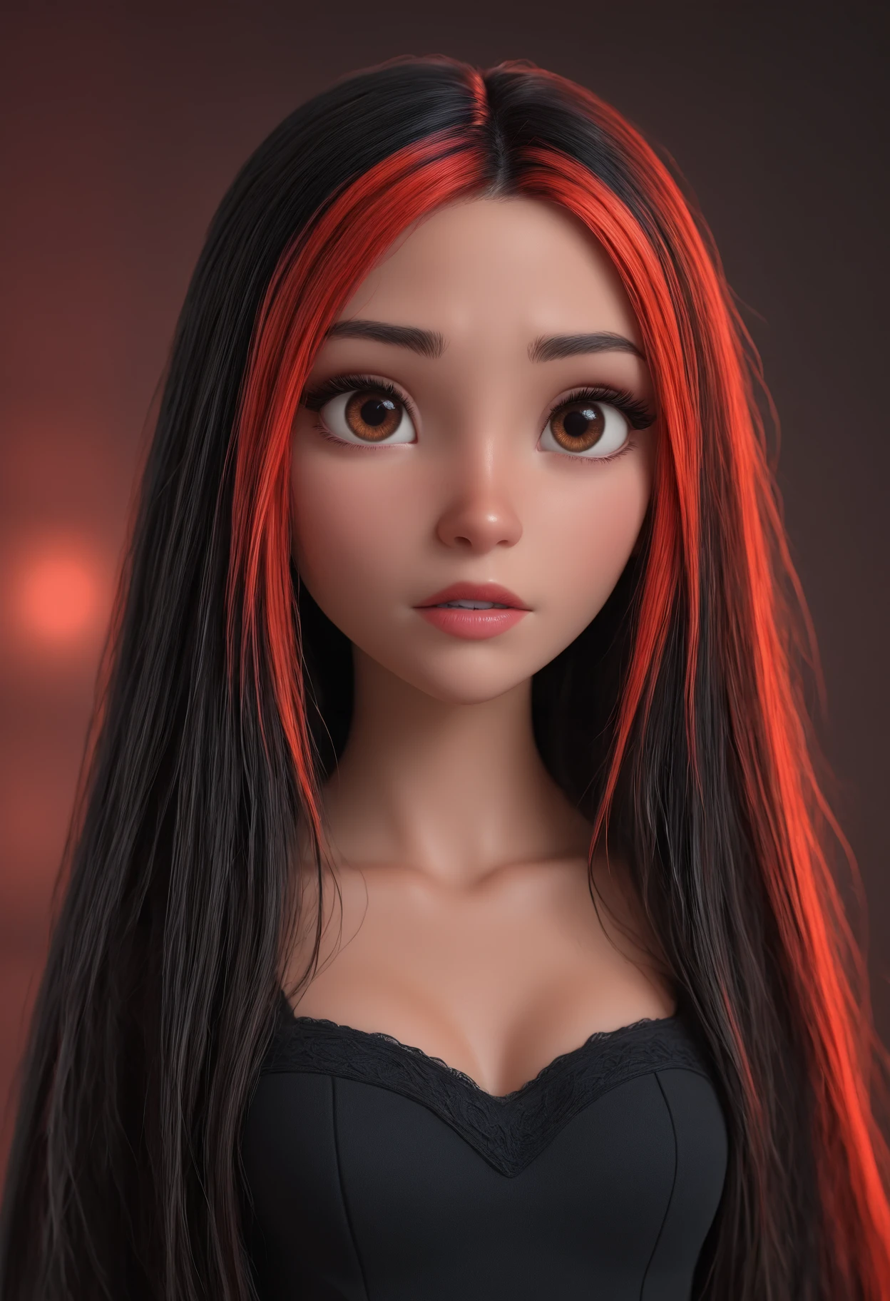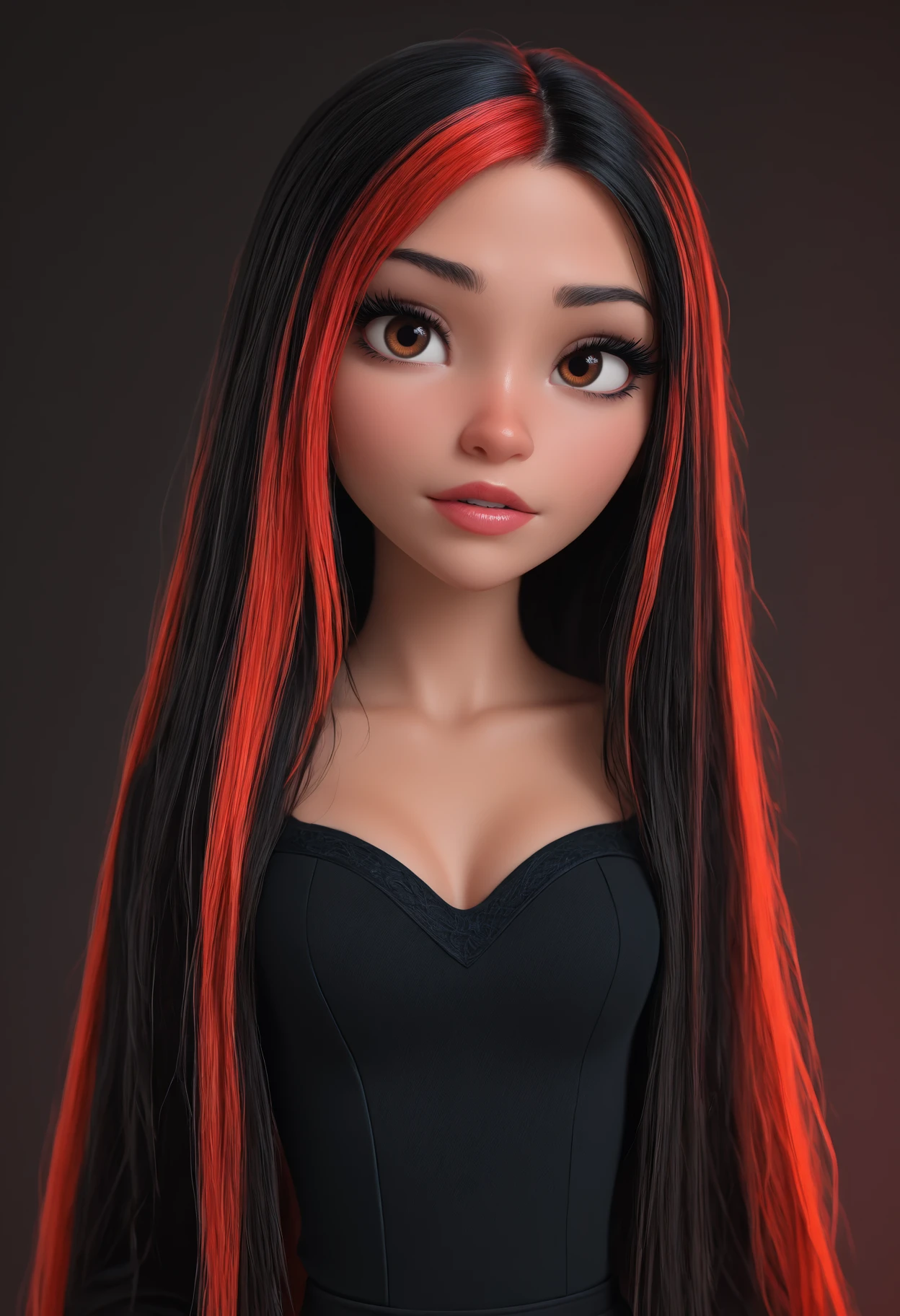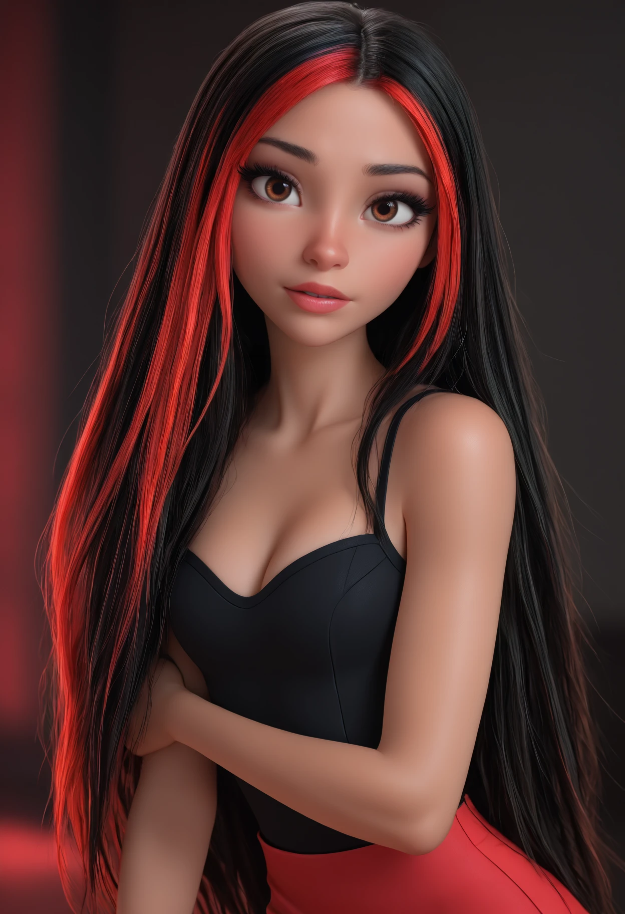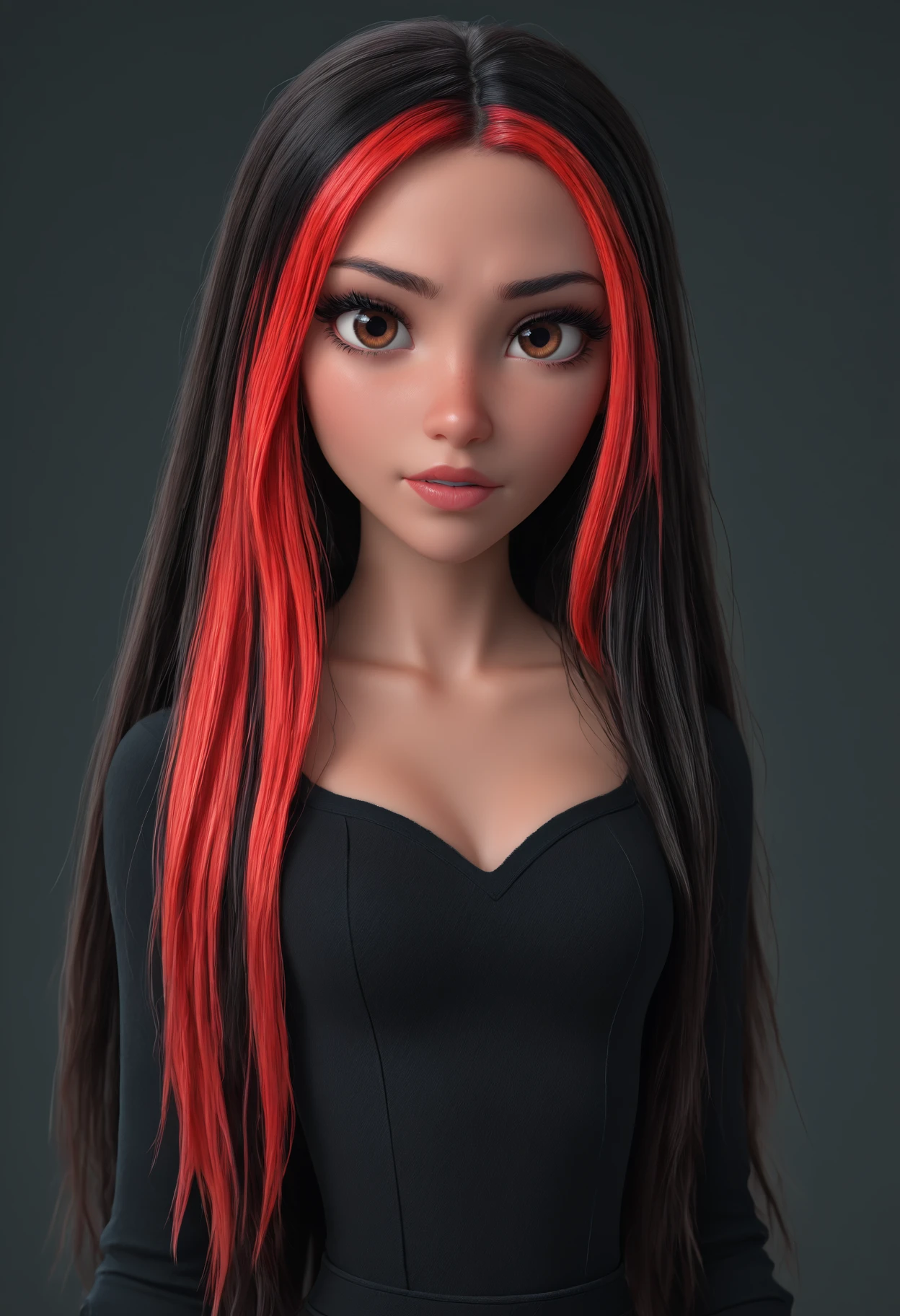 Alyr1, Brown eyes, long hair, Black hair, red hair, two-tone hair