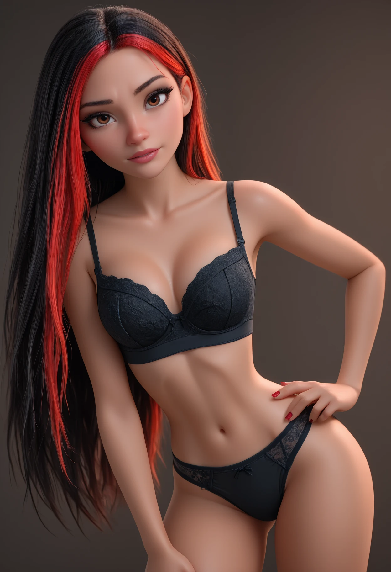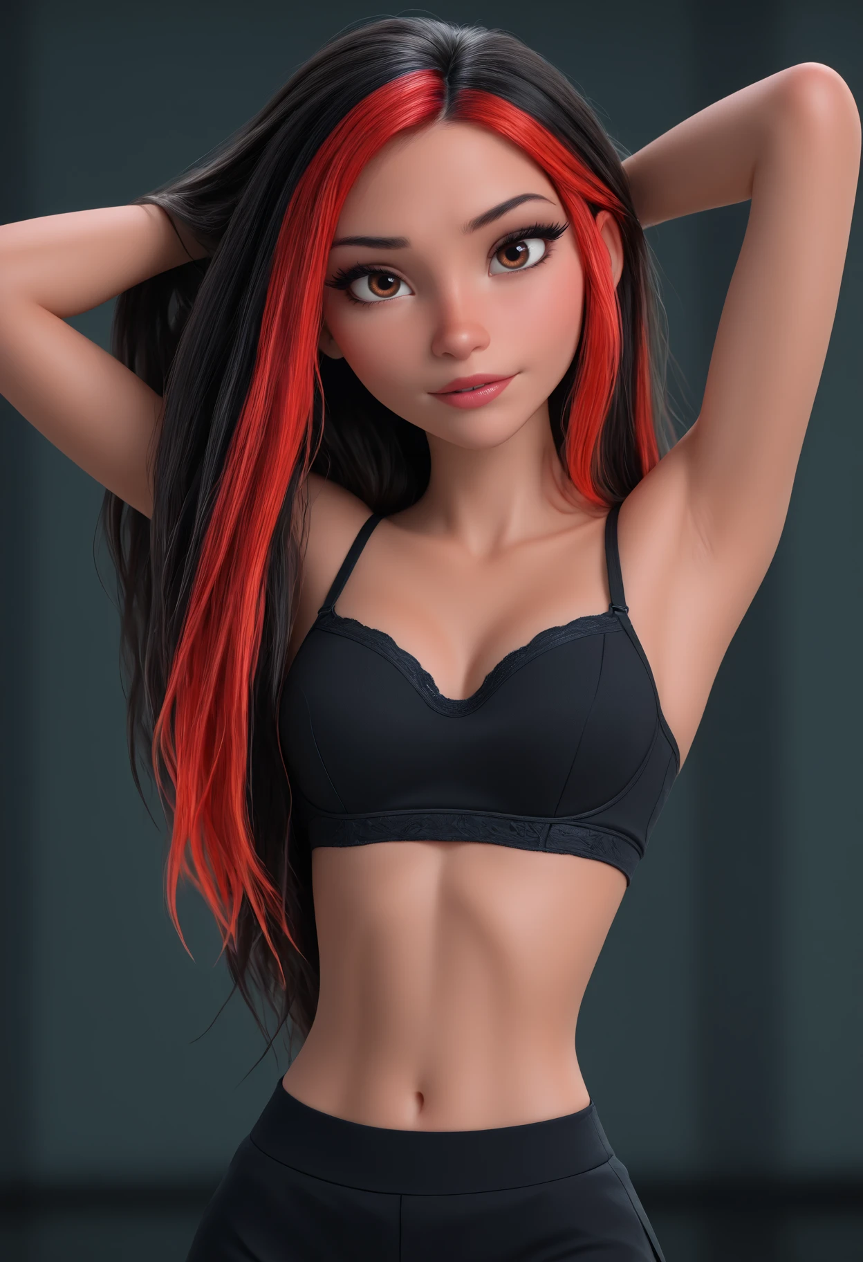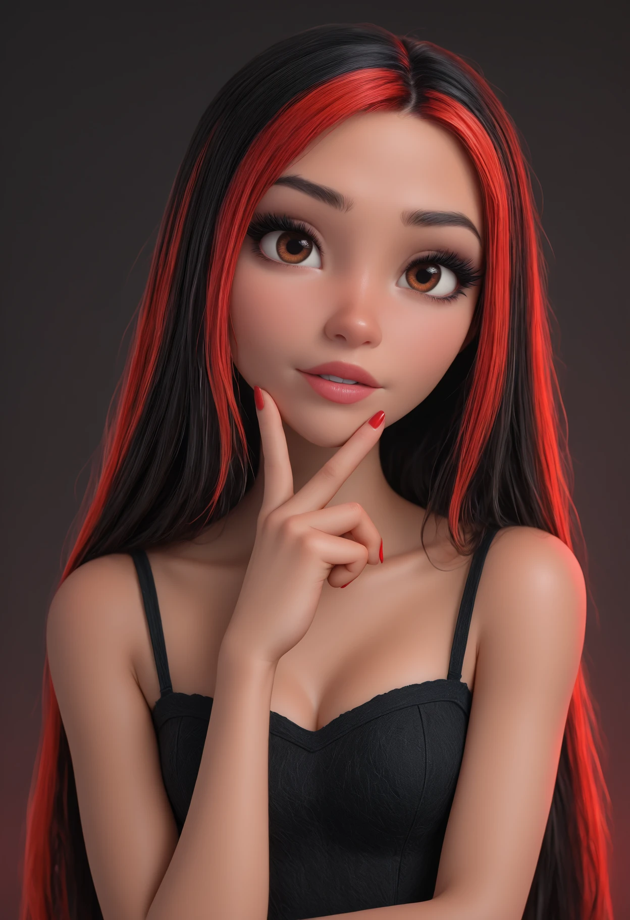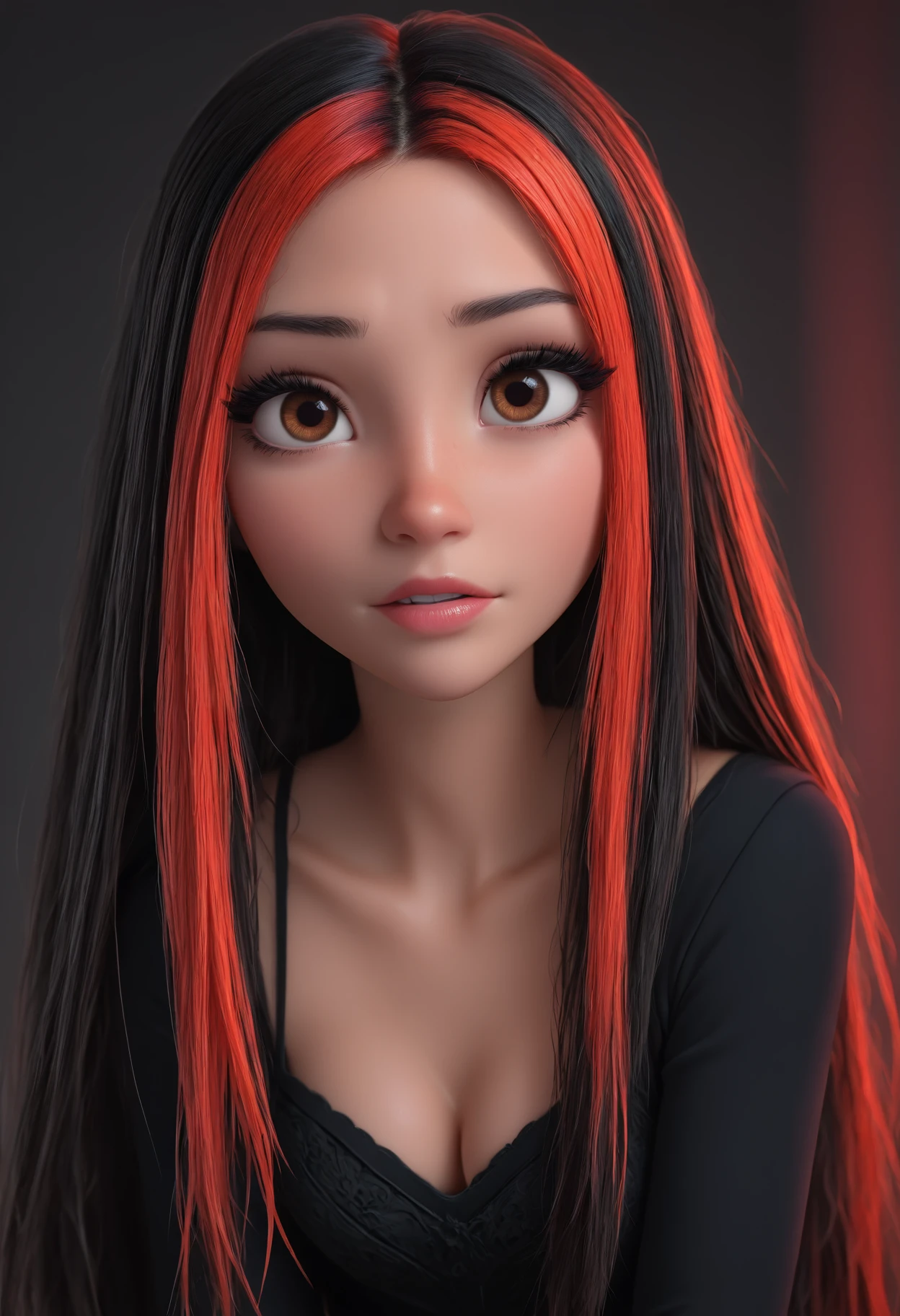 Alyr1, Brown eyes, long hair, Black hair, red hair, two-tone hair