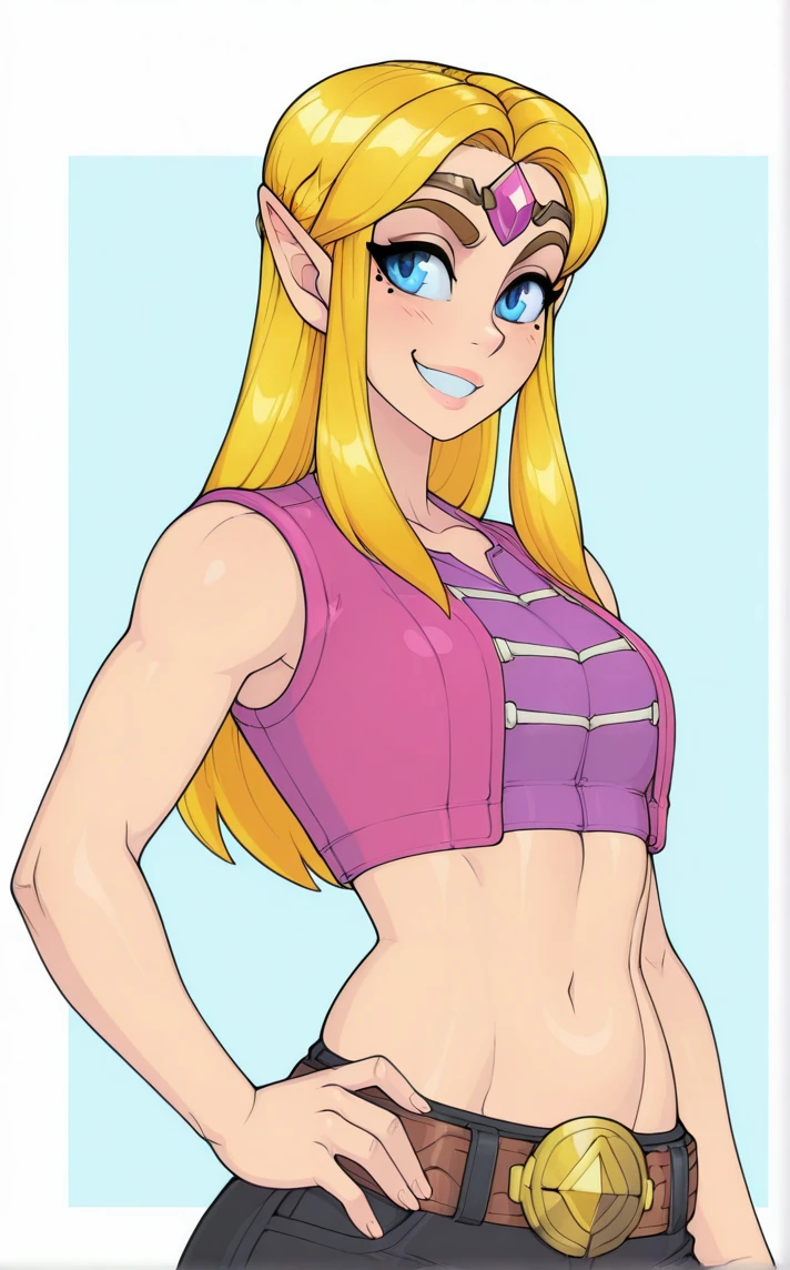 ILLUSTXL_STYLE_Shardanic_ownwaifu, 1girl, blonde hair, circlet, hand on hip, long hair, midriff, navel, pointy ears, smile, princess zelda, blue eyes, belt, grin, vest, mole under eye, crop top, tiara, forehead jewel, sleeveless, hand on own hip, cosplay, elfIf you appreciate the models, please consider leaving us a review and sharing the images generated using this model. Your feedback is valuable to both us and the AI community. Happy prompting, AI enthusiasts!π
