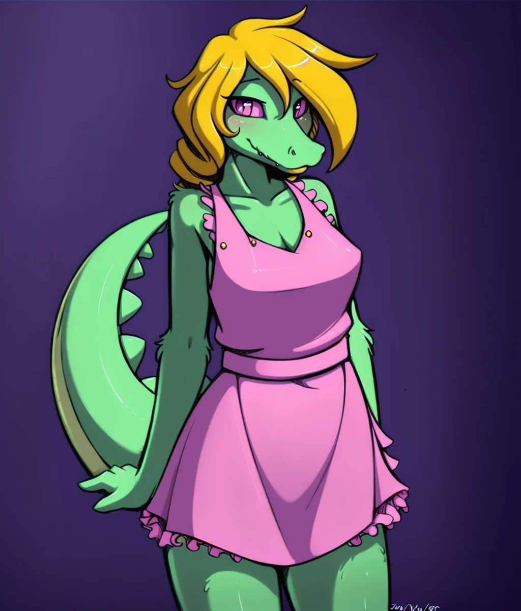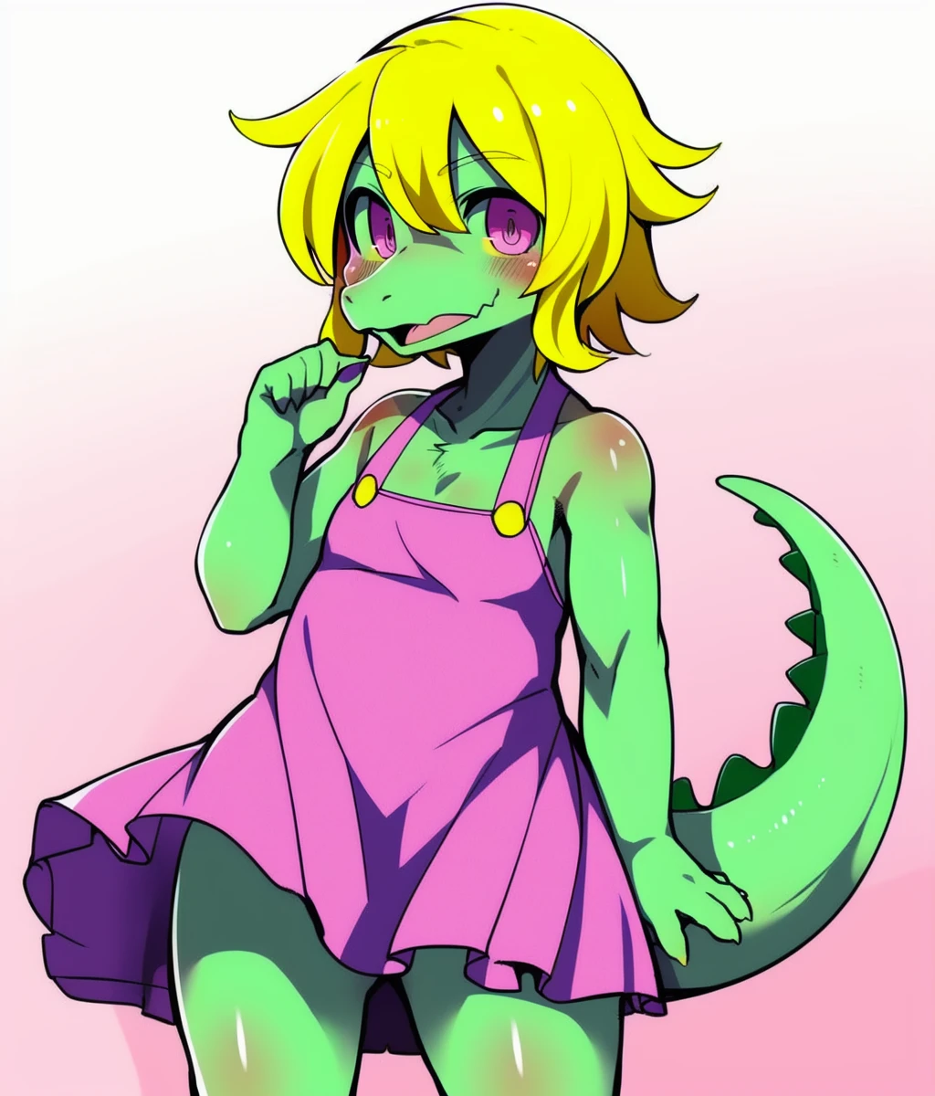 Reinforcement Tags: alligator,tail,colored sclera,pink eyes,dress,