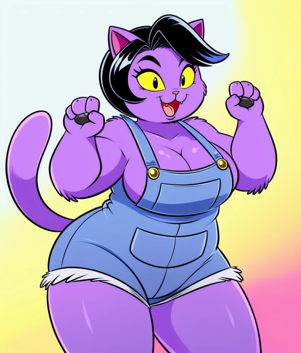 Reinforcement Tags: cat,tail,Yellow cat eyes,colored sclera,dungarees