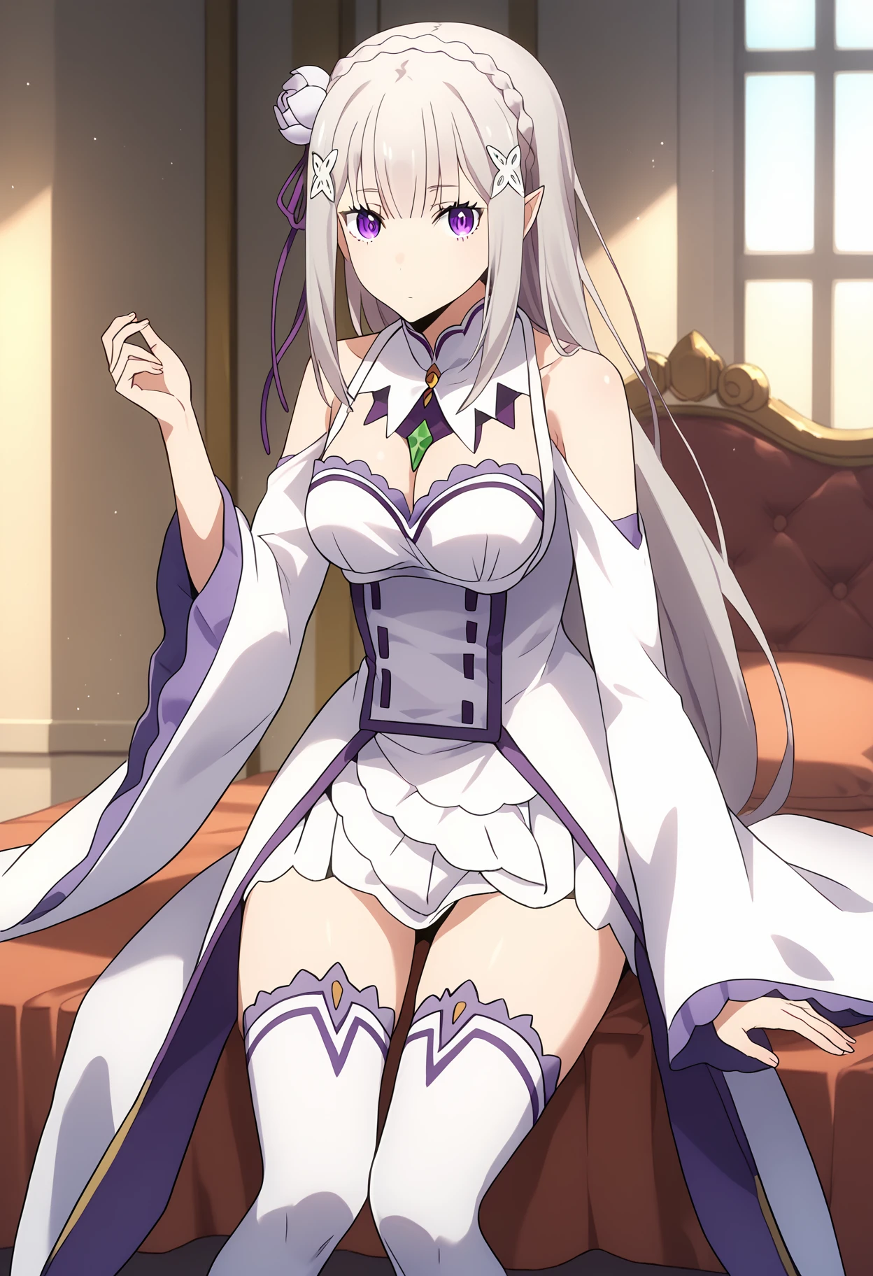 haenime, blonde hair, short hair, purple eyes, shoulder armor, gloves, armor, bodysuit, gauntlets, pauldrons, armored boots, red shirt, red pants,