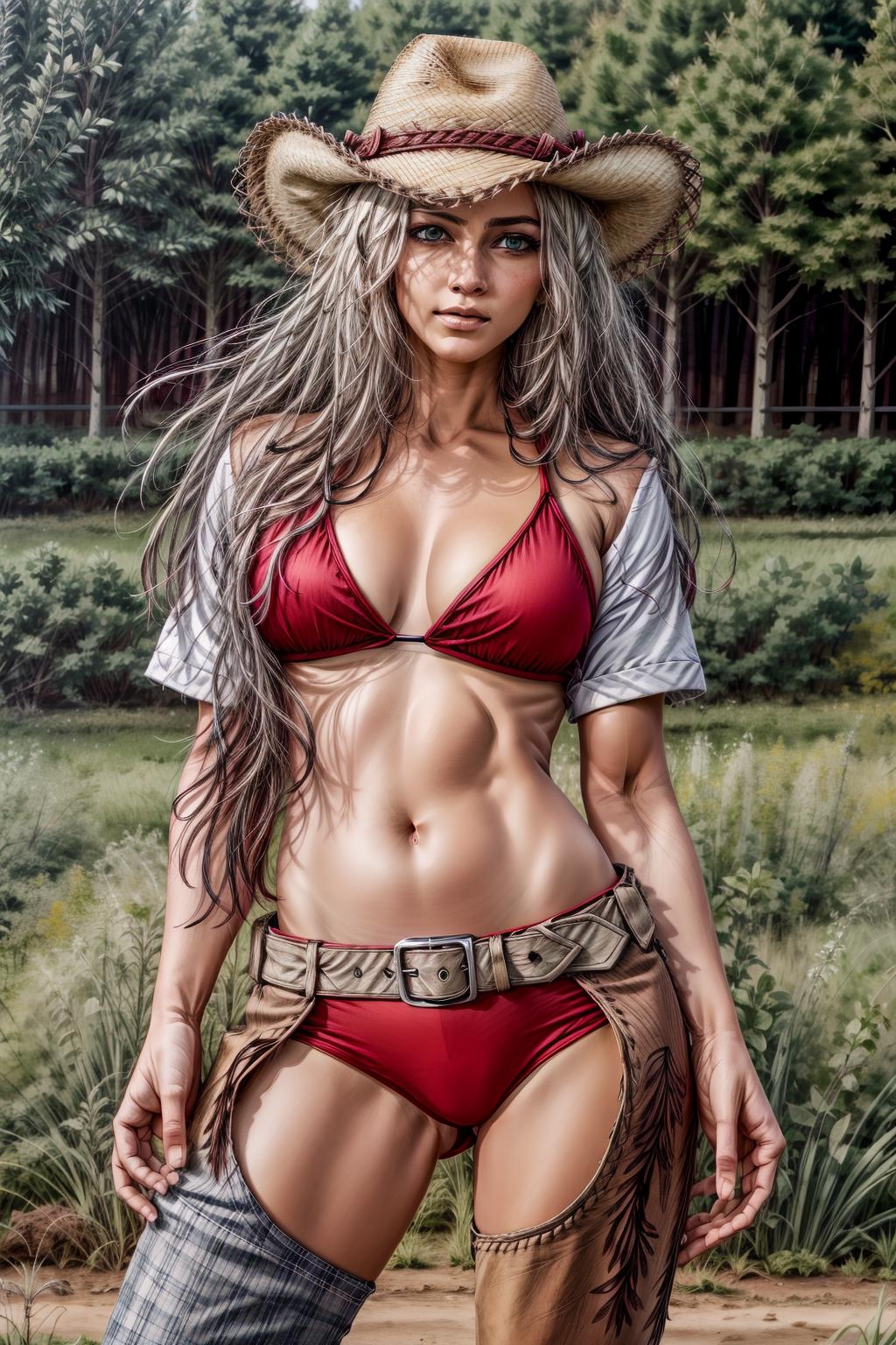 Lora of cowboy chaps and hat trained on realistic images