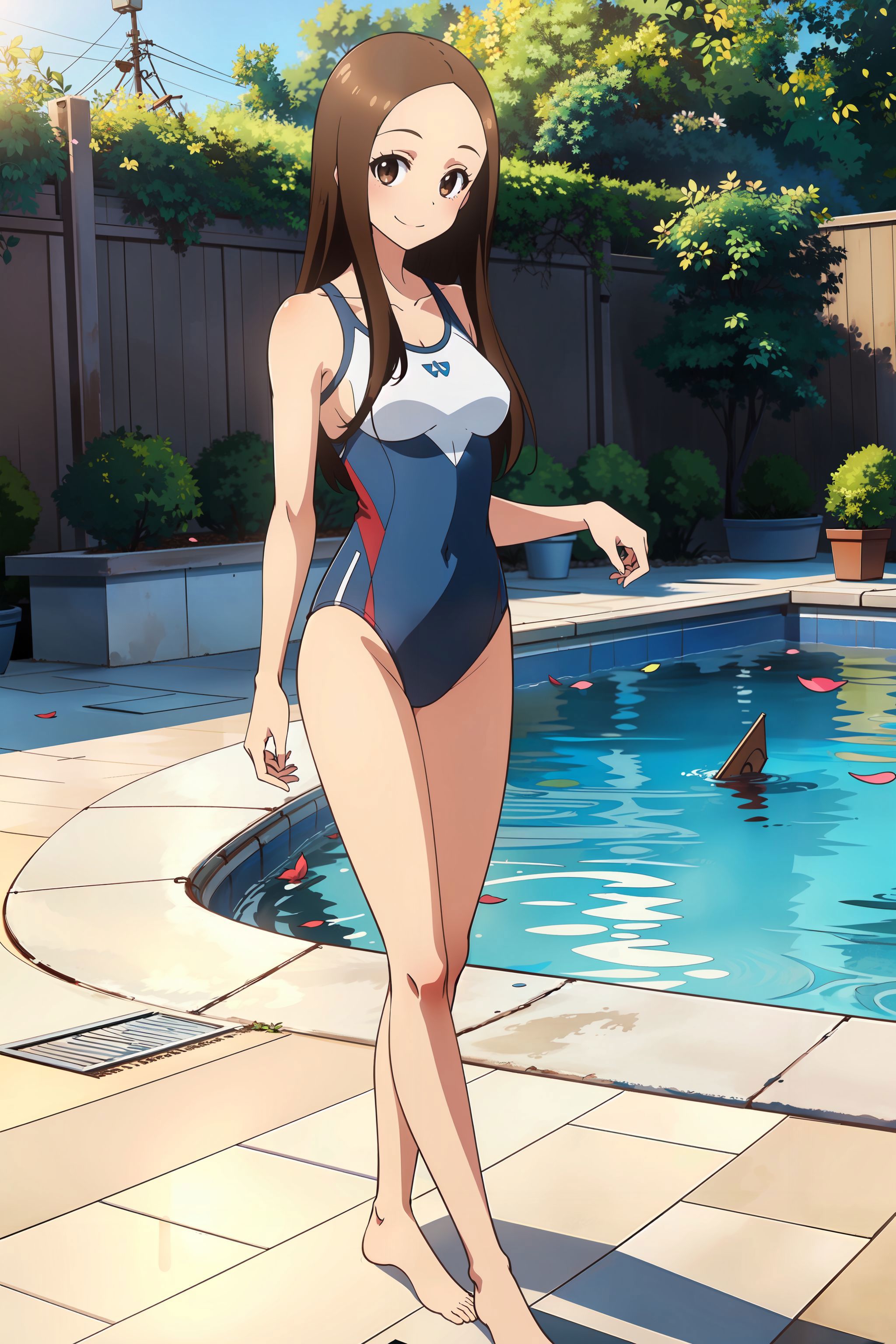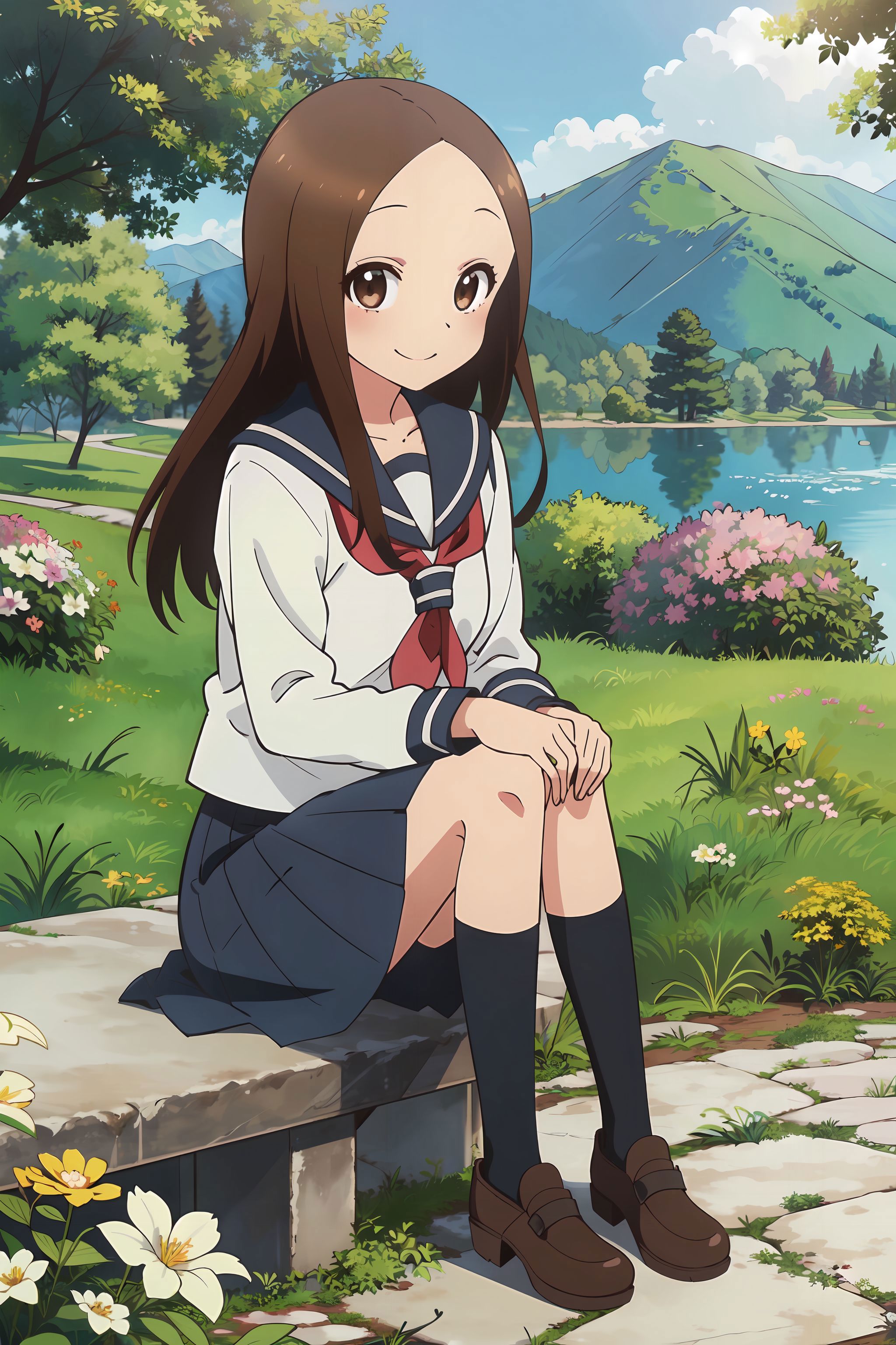Trigger Words:takagi_san, 1girl, brown hair, long hair, parted bangs, brown eyes, forehead