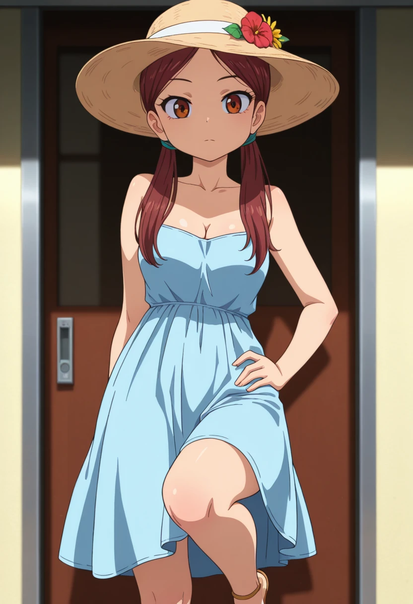 hiroko-aww, young adult, brown eyes, brown hair, long hair, twintails, low twintails, parted bangs,
