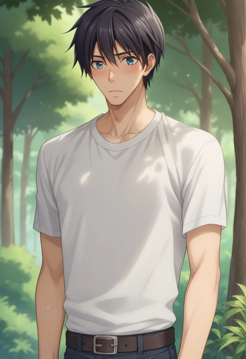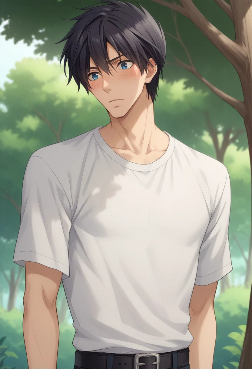nowaki, 1boy, male focus, black hair, blue eyes, shirt, belt, pants,