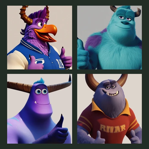 Characters are Sulley, Brock Pearson and Johnny Worthington from Monsters University, and Tylor Tuskmon from the show.
