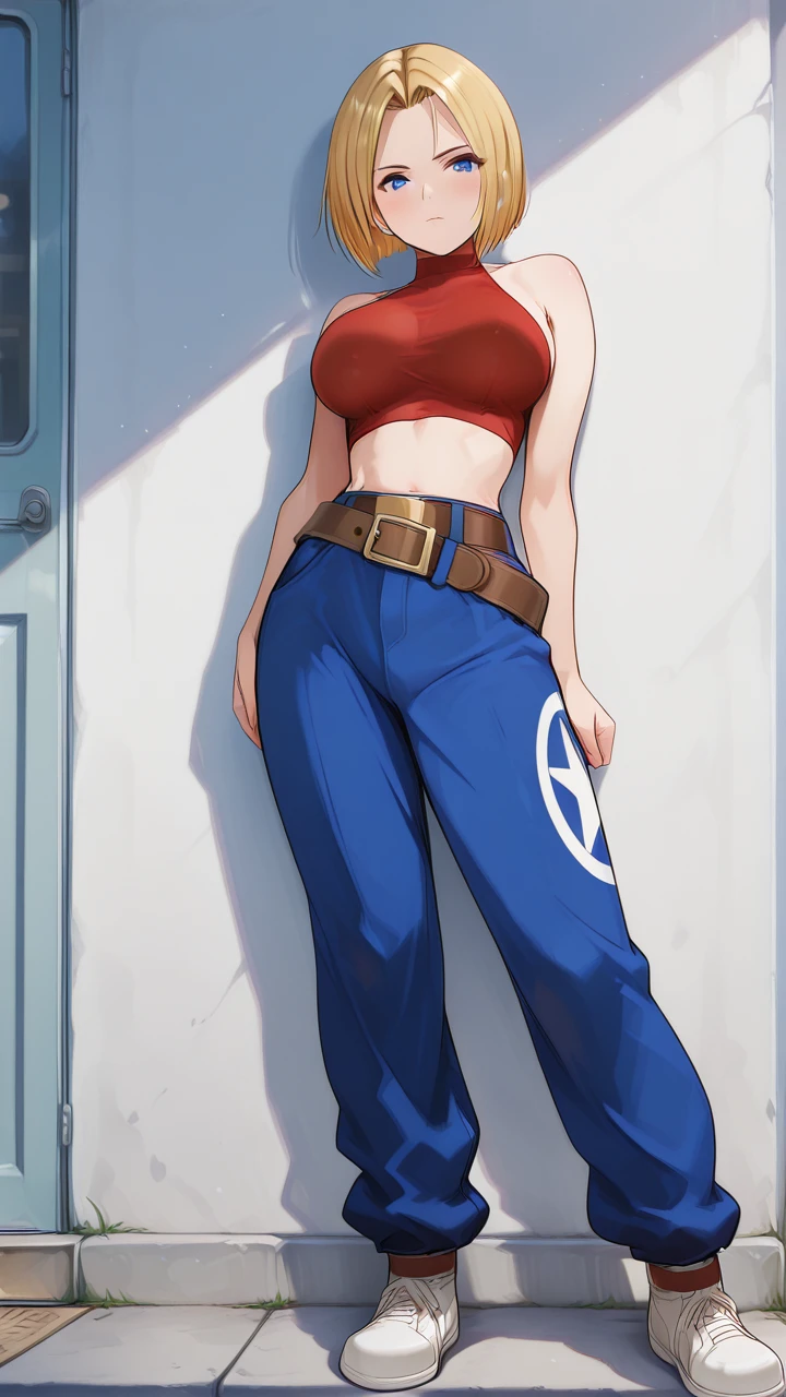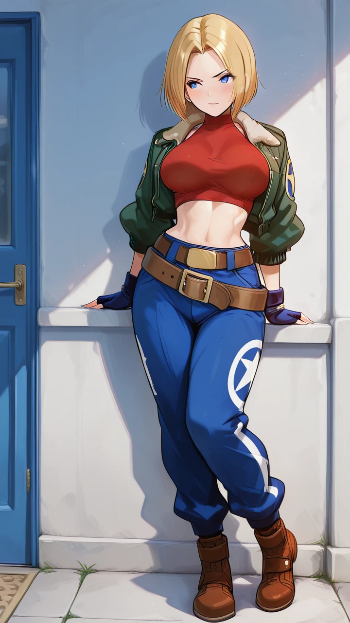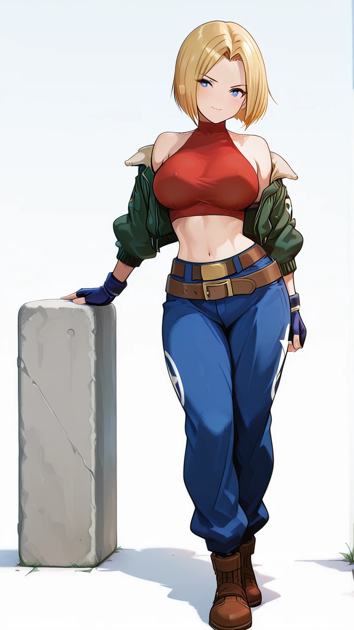 (masterpiece, best quality, ultra detailed, very erotic:1.3), Blue Mary, full body, front view, wearing only her green bomber jacket, jacket, visible boobs lower using red high-cut thong, toned abs, blonde bob cut, standing neutral, flat, Blue Mary Bomber Naked(masterpiece, best quality, ultra detailed, very erotic:1.3), Blue Mary, full body, perfect eyes, perfect pupils, front view, completely nude, breasts fully exposed, bare pussy, toned athletic body, wide hips, defined abs, short blonde bob haircut, blue eyes, calm confident expression, standing in neutral pose, hands at sides, clean anime style, Blue Mary NakedIt's my first lora, so I'll try to improve, any advice or suggestion is welcome! if you create something with it, share it with me!