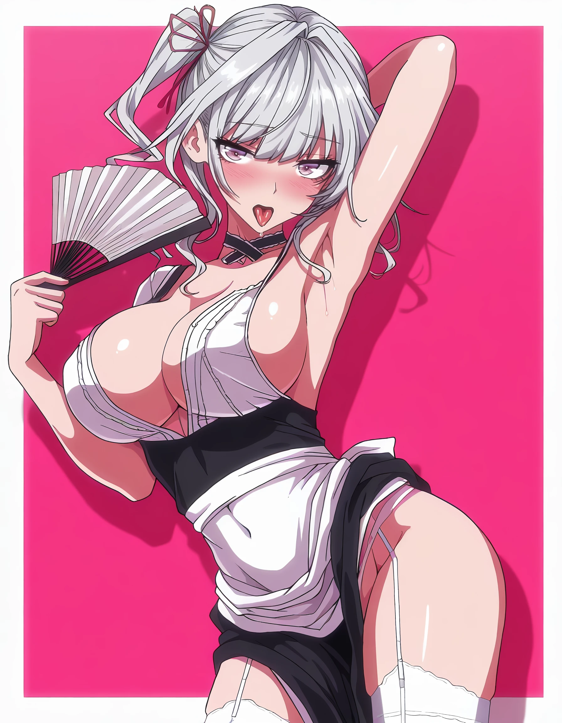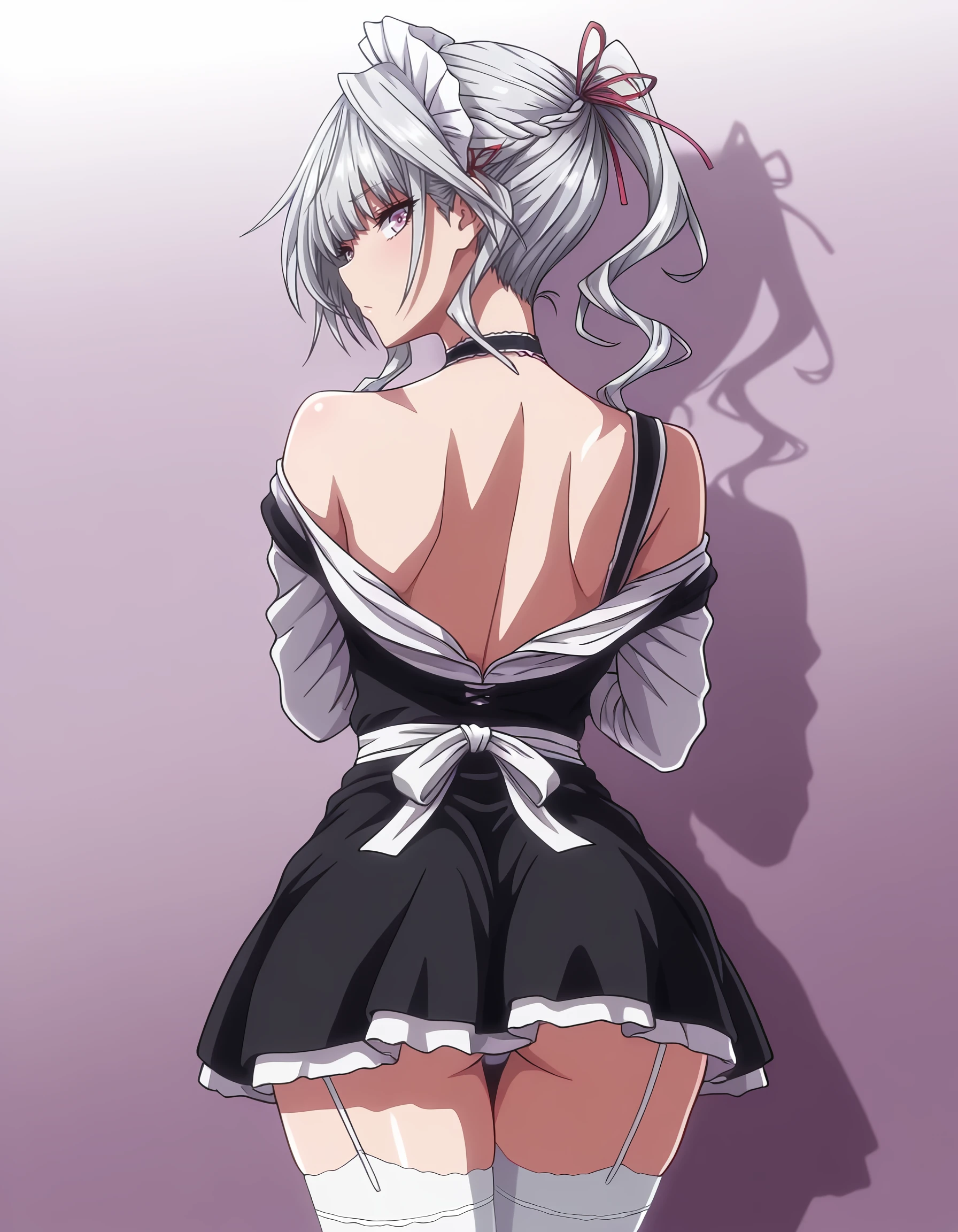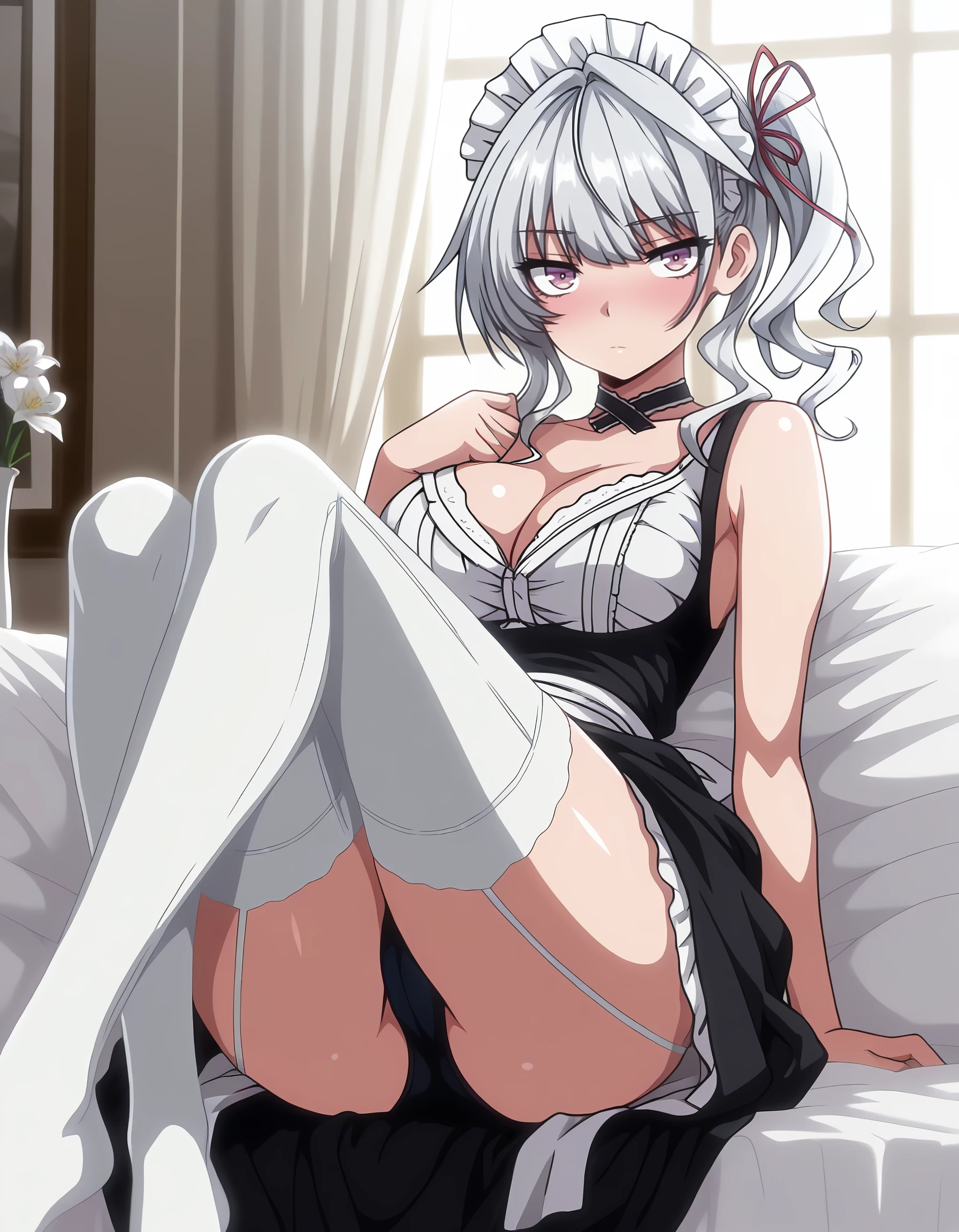 choker, maid, underwear, white_thighhighs, garter_straps