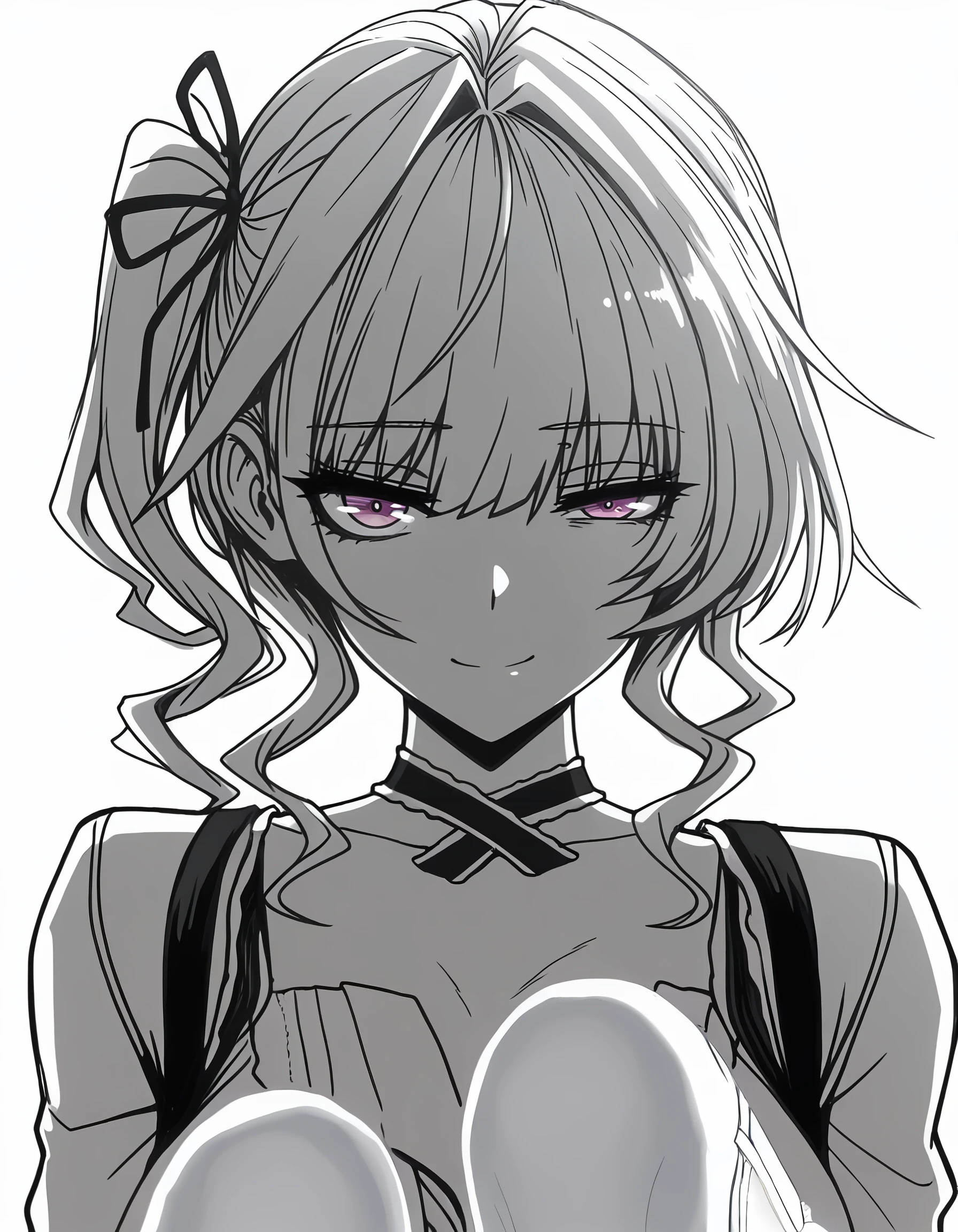 hatsukoi_jikan_-_anri, long_hair, grey_hair, white_hair, hair_ribbon, side_ponytail, purple_eyes