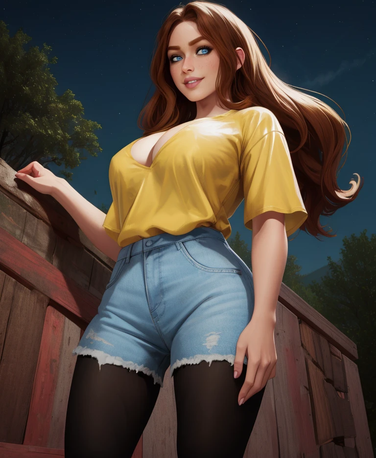 hollyb4b, blue eyes, -- brown hair, or orange hair, ponytail,