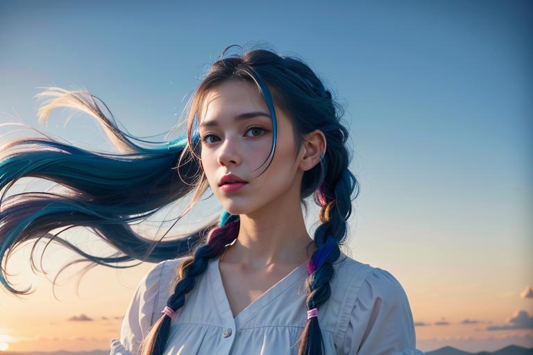 > python3 lora_anim.py -s -3.5 -e 3.5 -l "windblown" -lp ", windblown hair" -np "???????, child, weird image." -n 25 -sd 6 -m 3.5