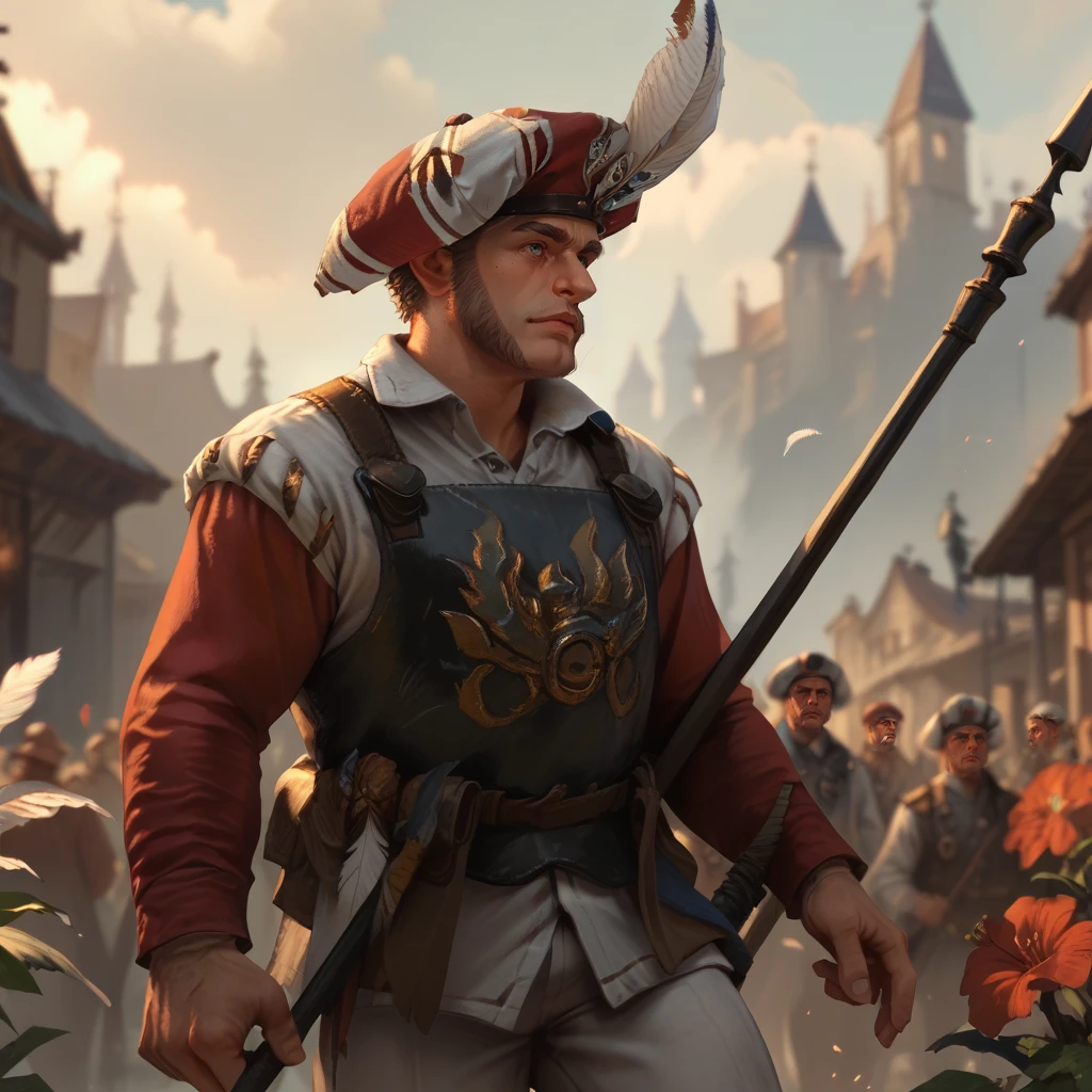 EmpireStateTrooper, hat, feather, striped pants, armor, holding polearm,Let me know what other Warhammer LORAs you'd be keen to see!