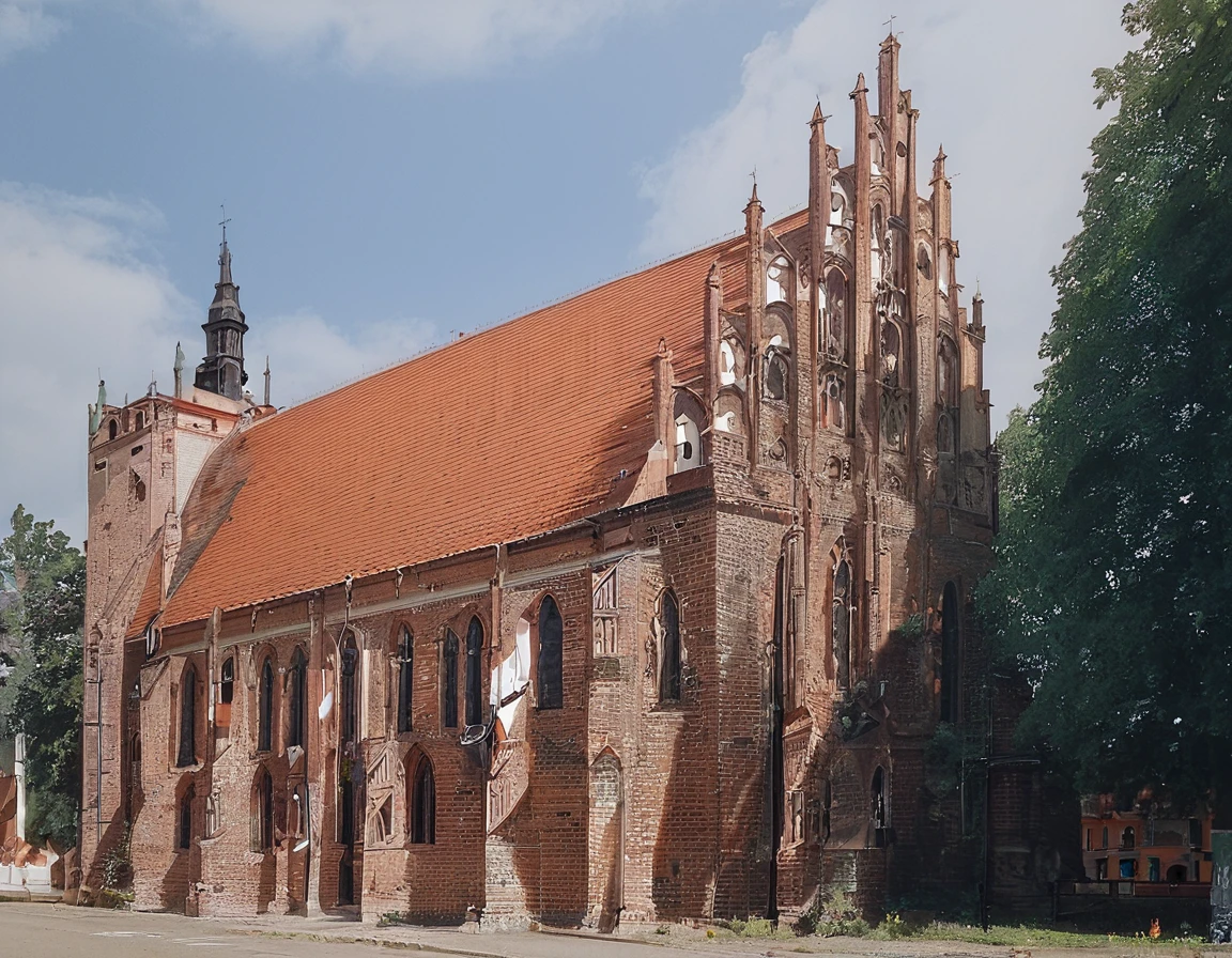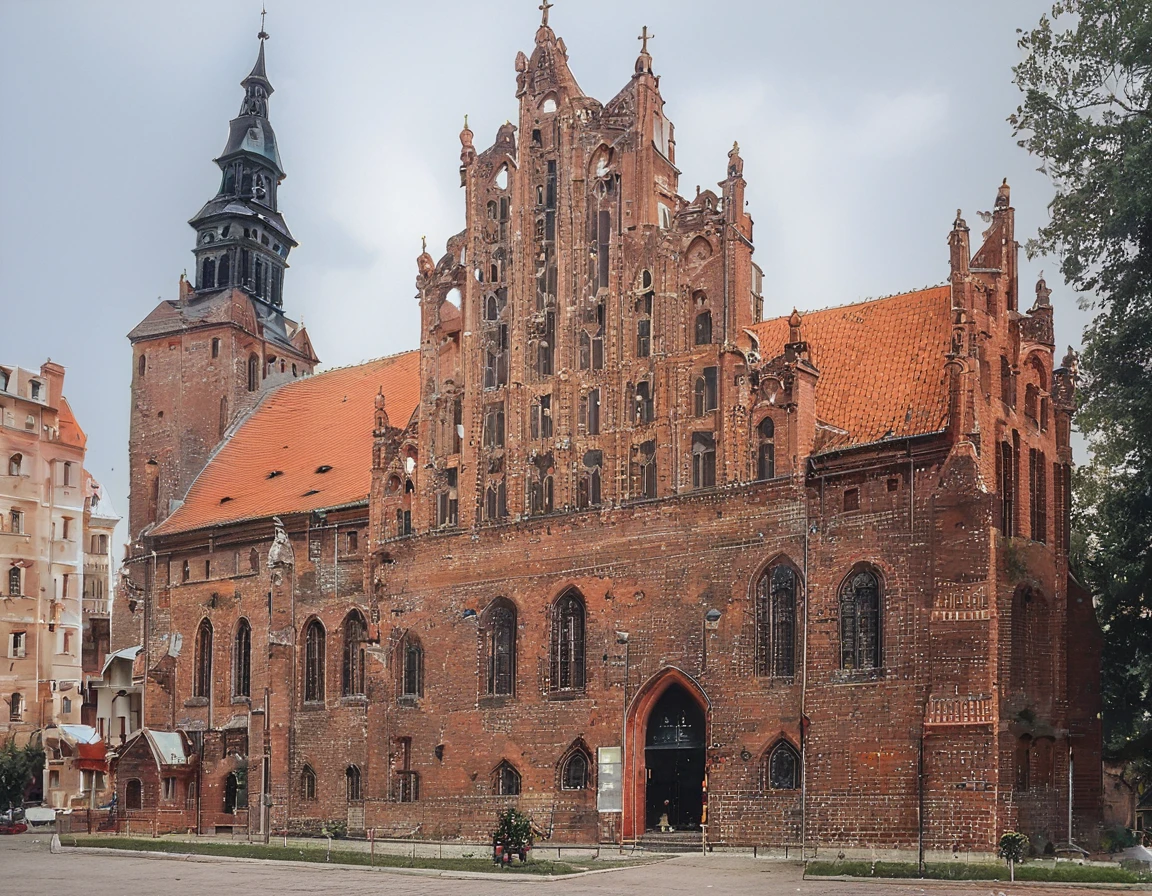 Score_9, Score_8_up, Wide Angel Shot, Grand Architecture, Grand Angle Shot, Gothic Architecture, Teutonic Architecture, Polish Cathedral, Brick Architecture, Profile shot