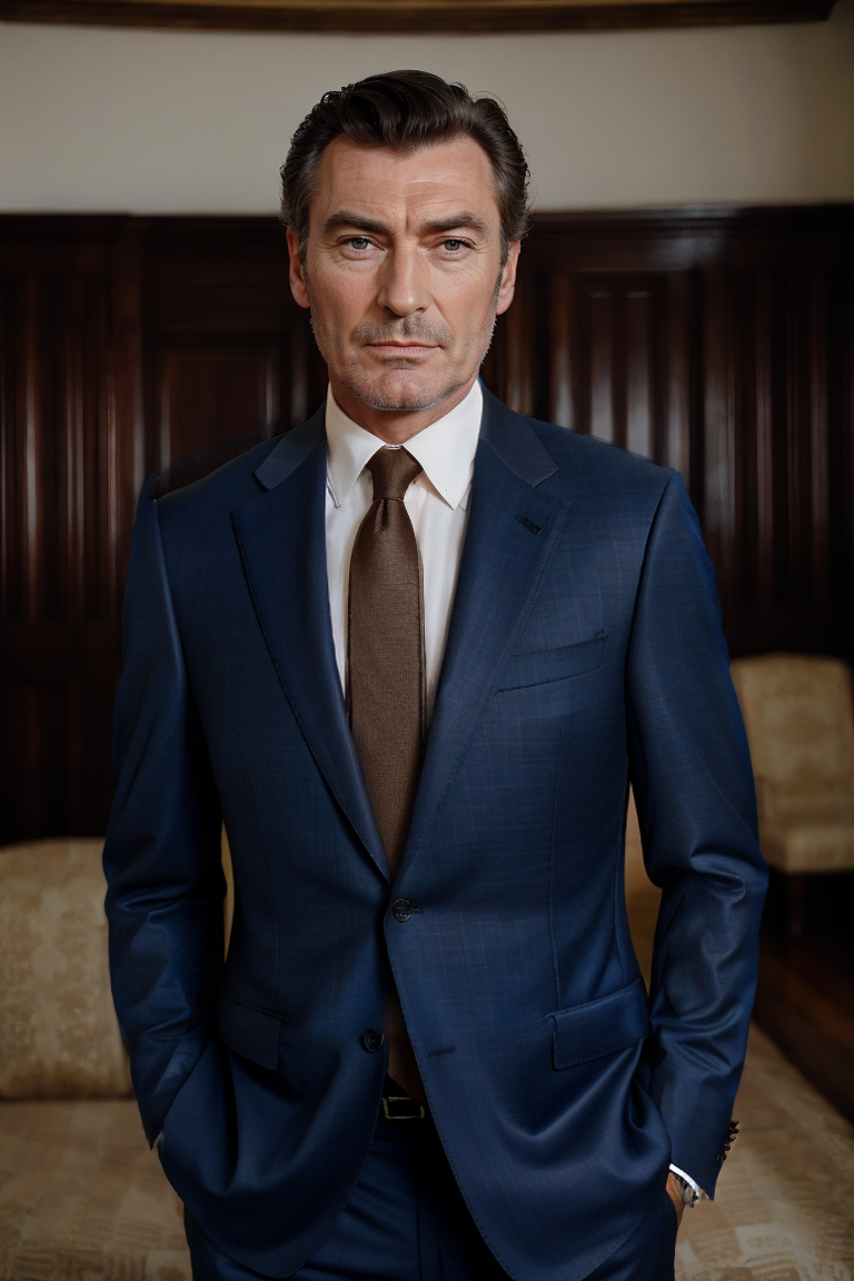 In my hours of trying to get good images with Philip, it appears that a lot of men trained in the base models are classic squared-jawed (and sometimes muscly) actors or models. Not that you can't prompt away from those obviously. You also might need to prompt for color or put black and white in your negative prompt because Philip looks a lot like classic actors from the 40s-60s.