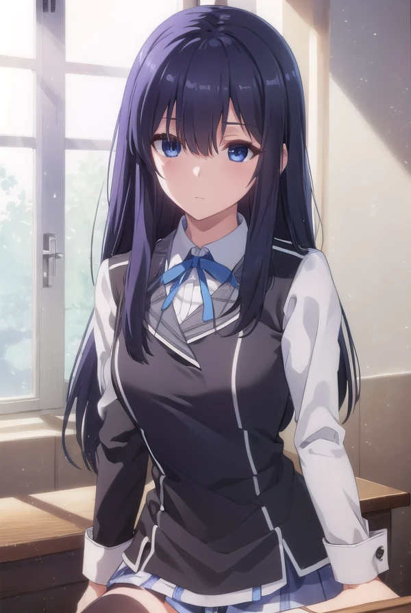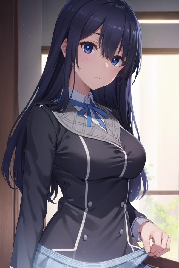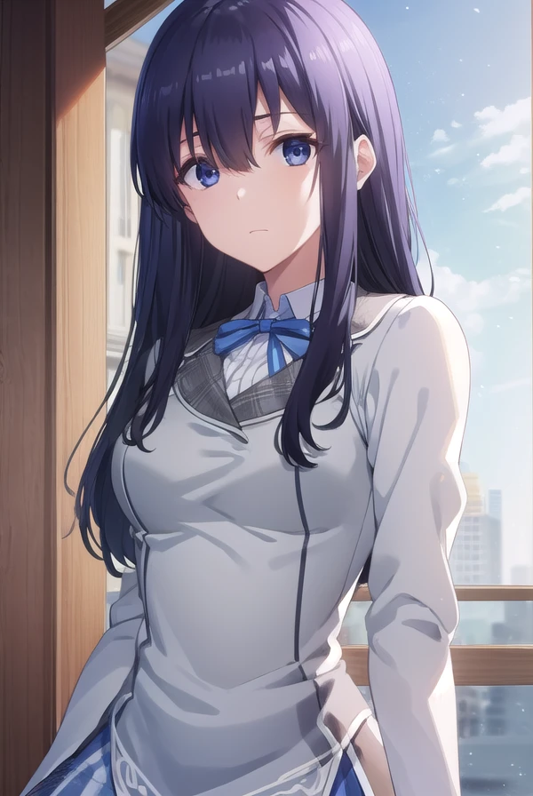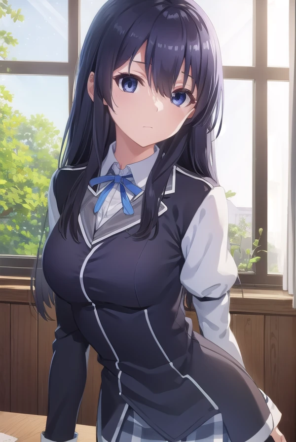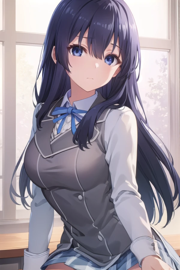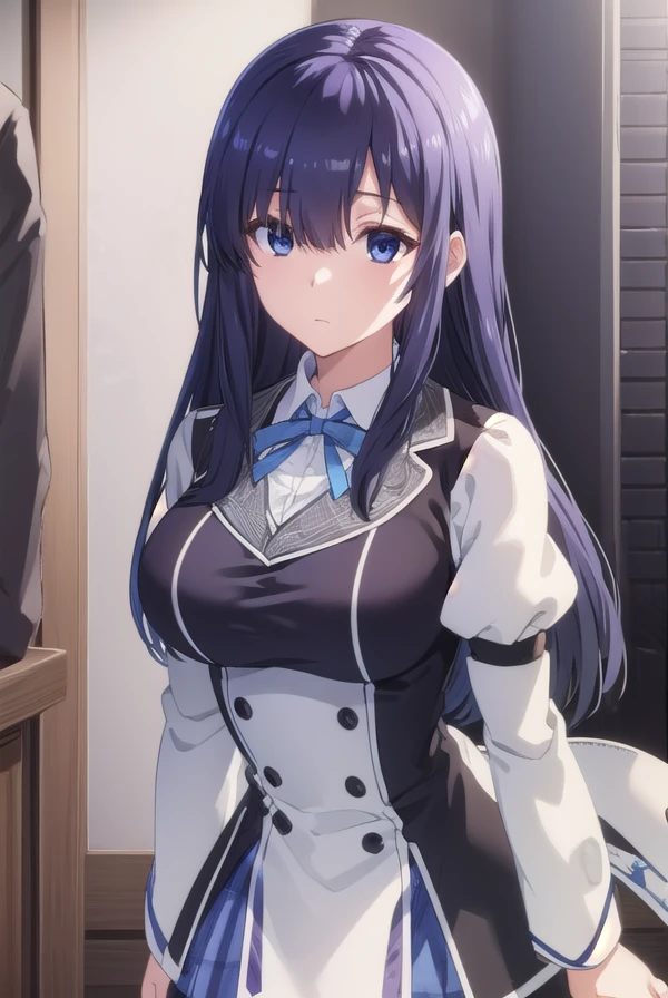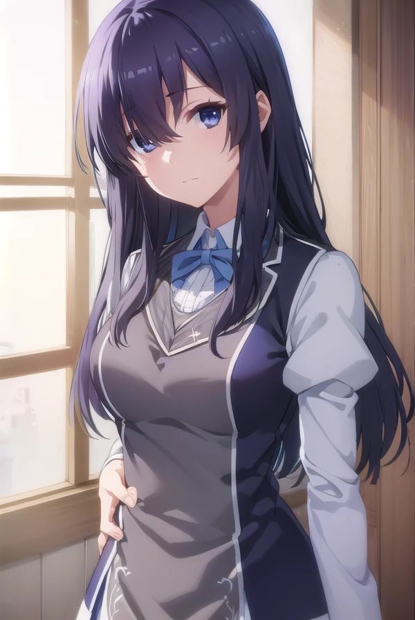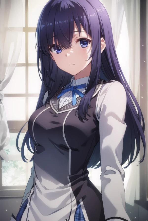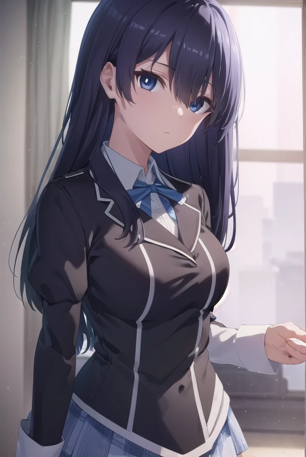 ayase ayatsuji, long hair, black hair, hair over one eye, (grey eyes:1.3),