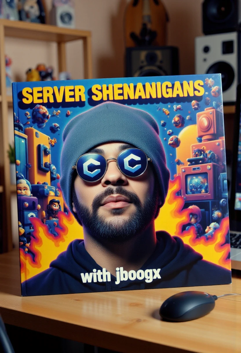 The image is a photograph of a CD case for the (THEME) themed album "(TEXT)" The CD case is placed on a (OBJECT). The cover art features (SUBJECT).