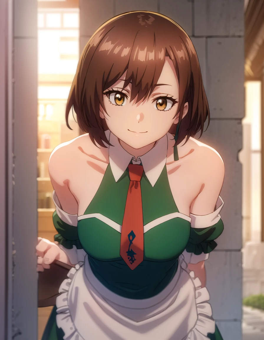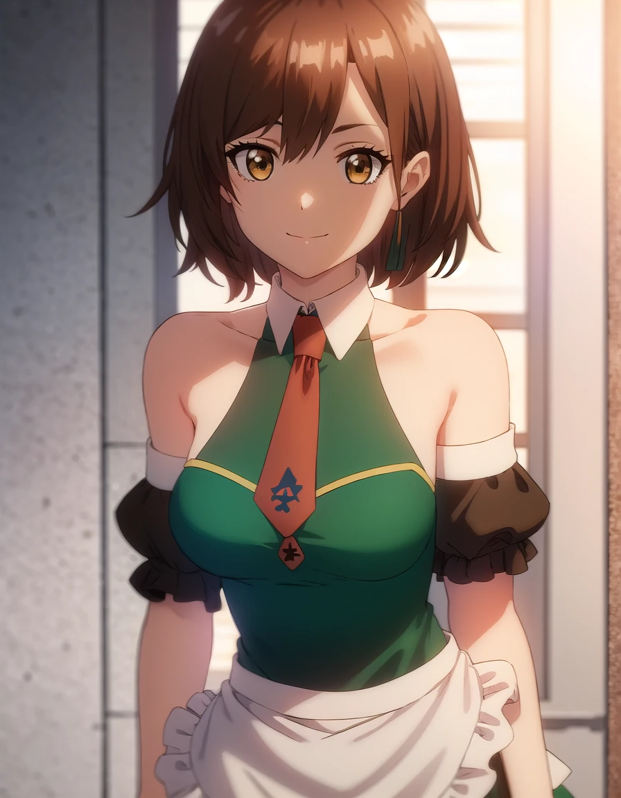 lola metrose, short hair, brown hair, hair between eyes, (brown eyes:1.5),