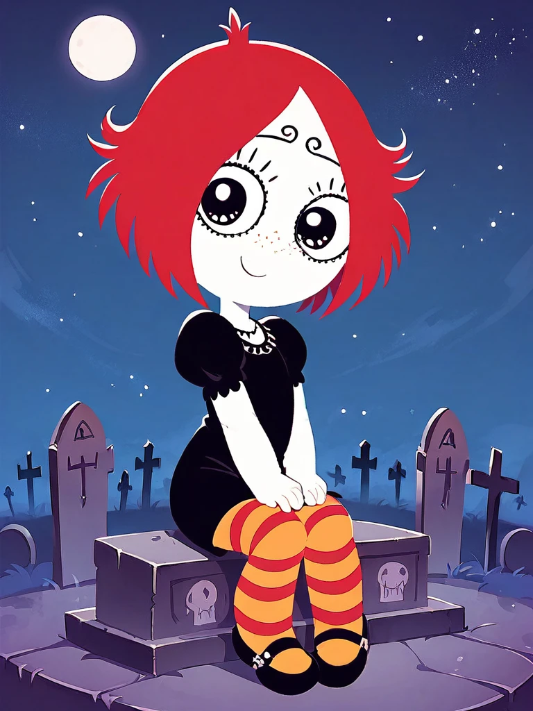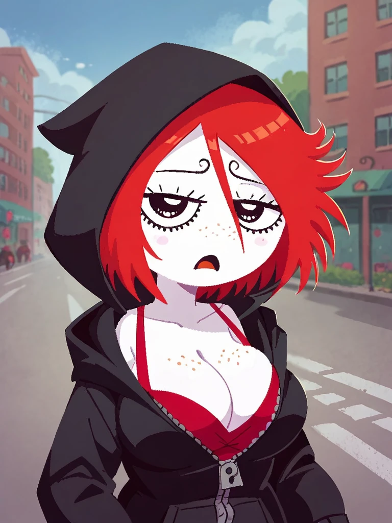 ruby gloom, red hair, short hair, white skin, freckles,