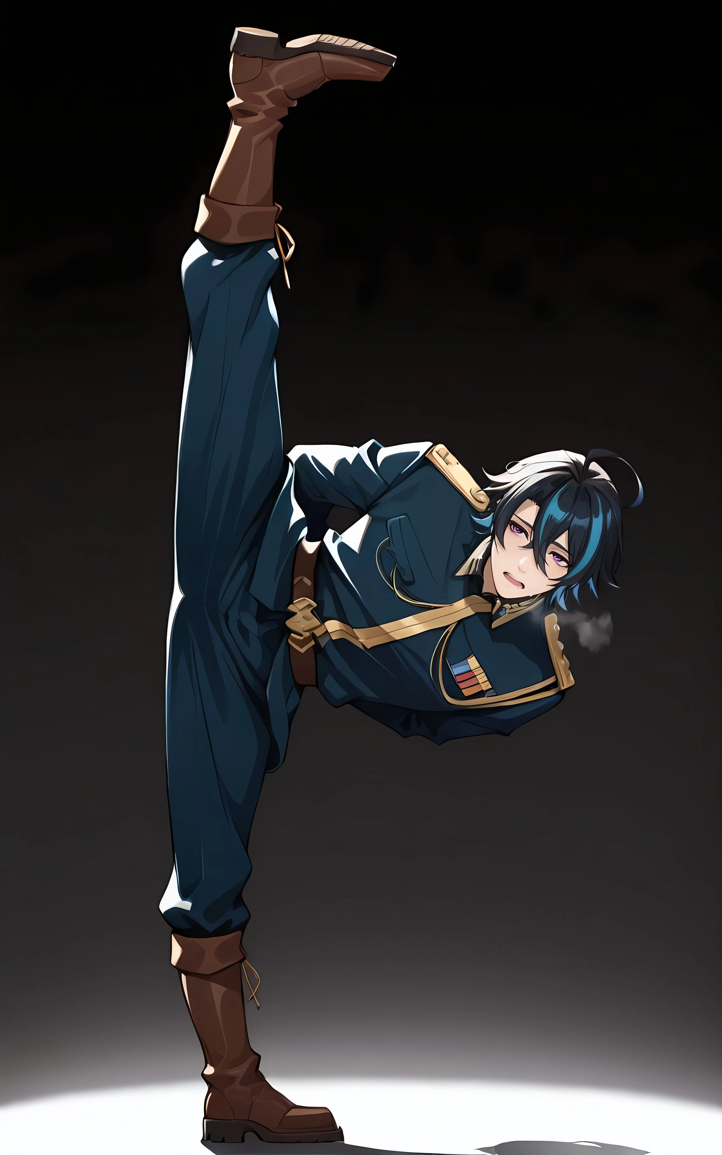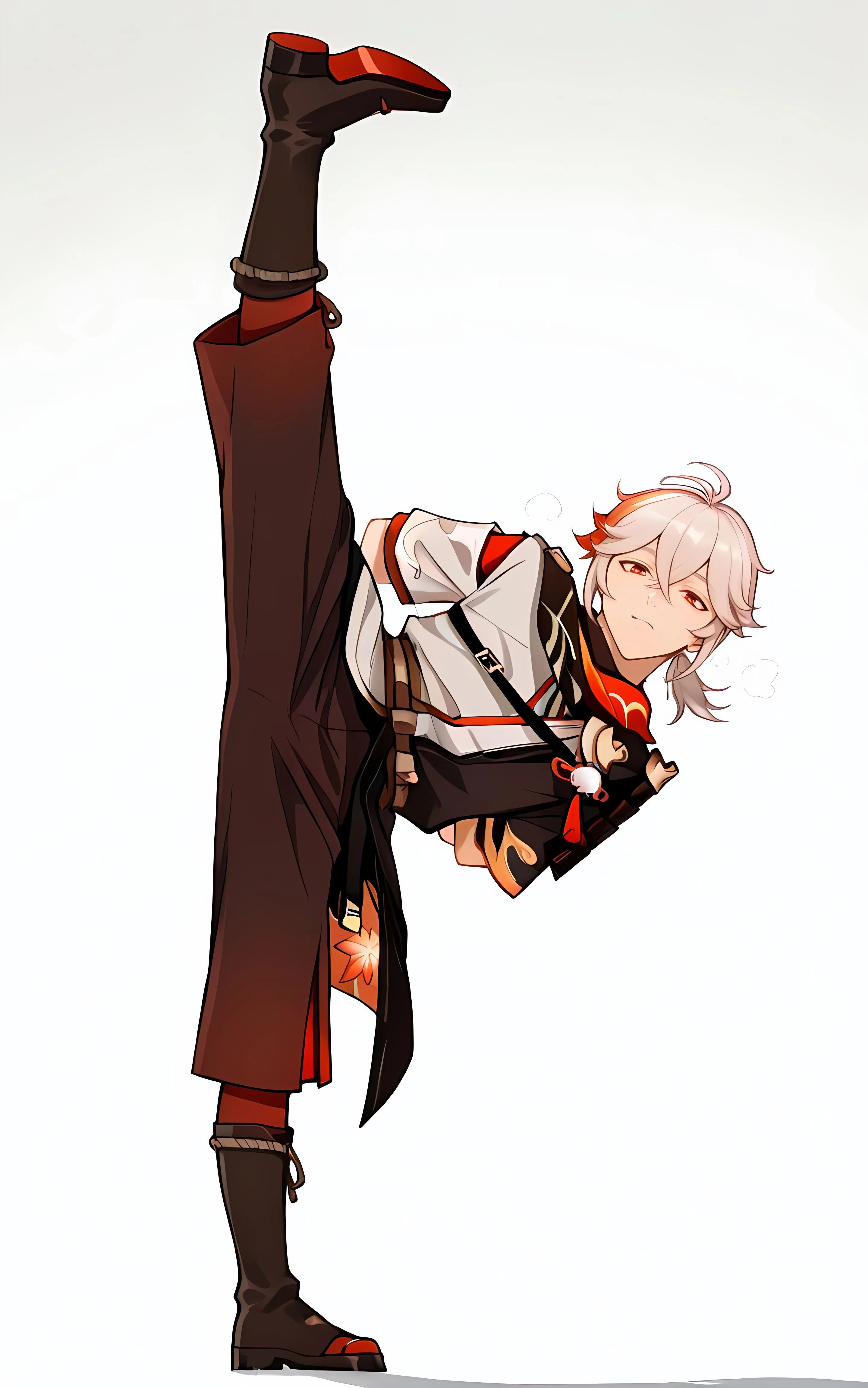Additional Tags: lifting leg up, one leg up, hands on back, standing, standing split, standing on one leg,full body,