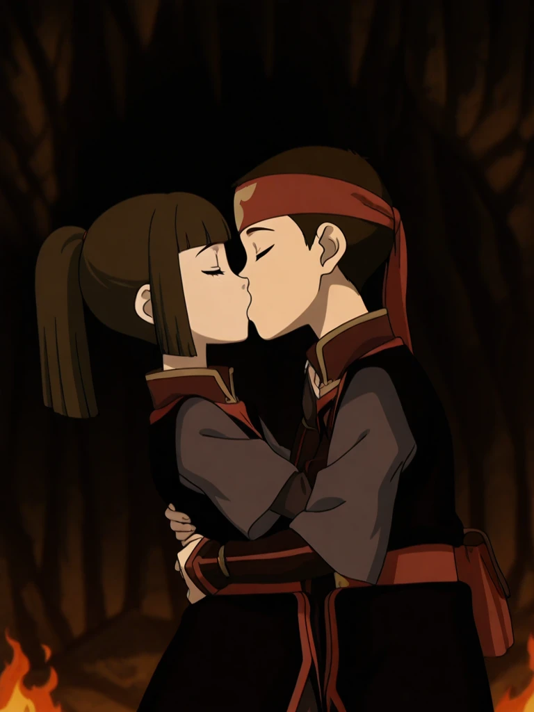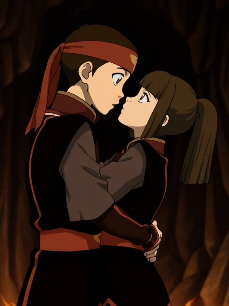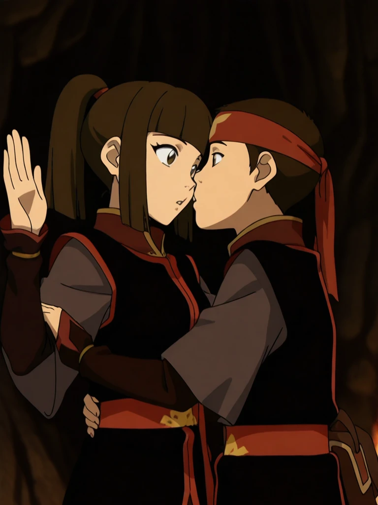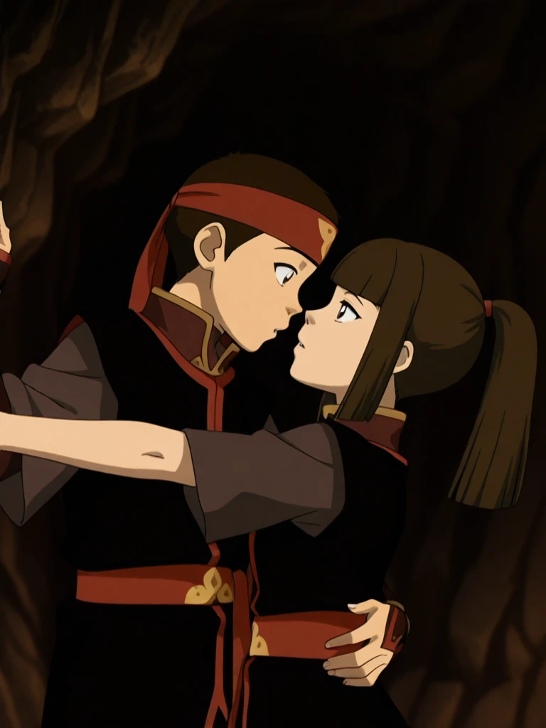 fire nation school uniform, black jacket, red trim, waistbandCharacters