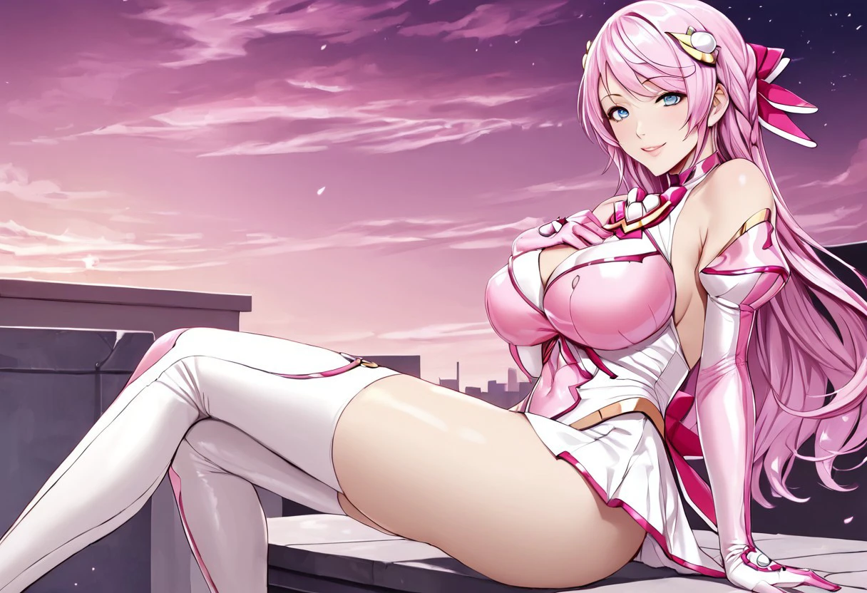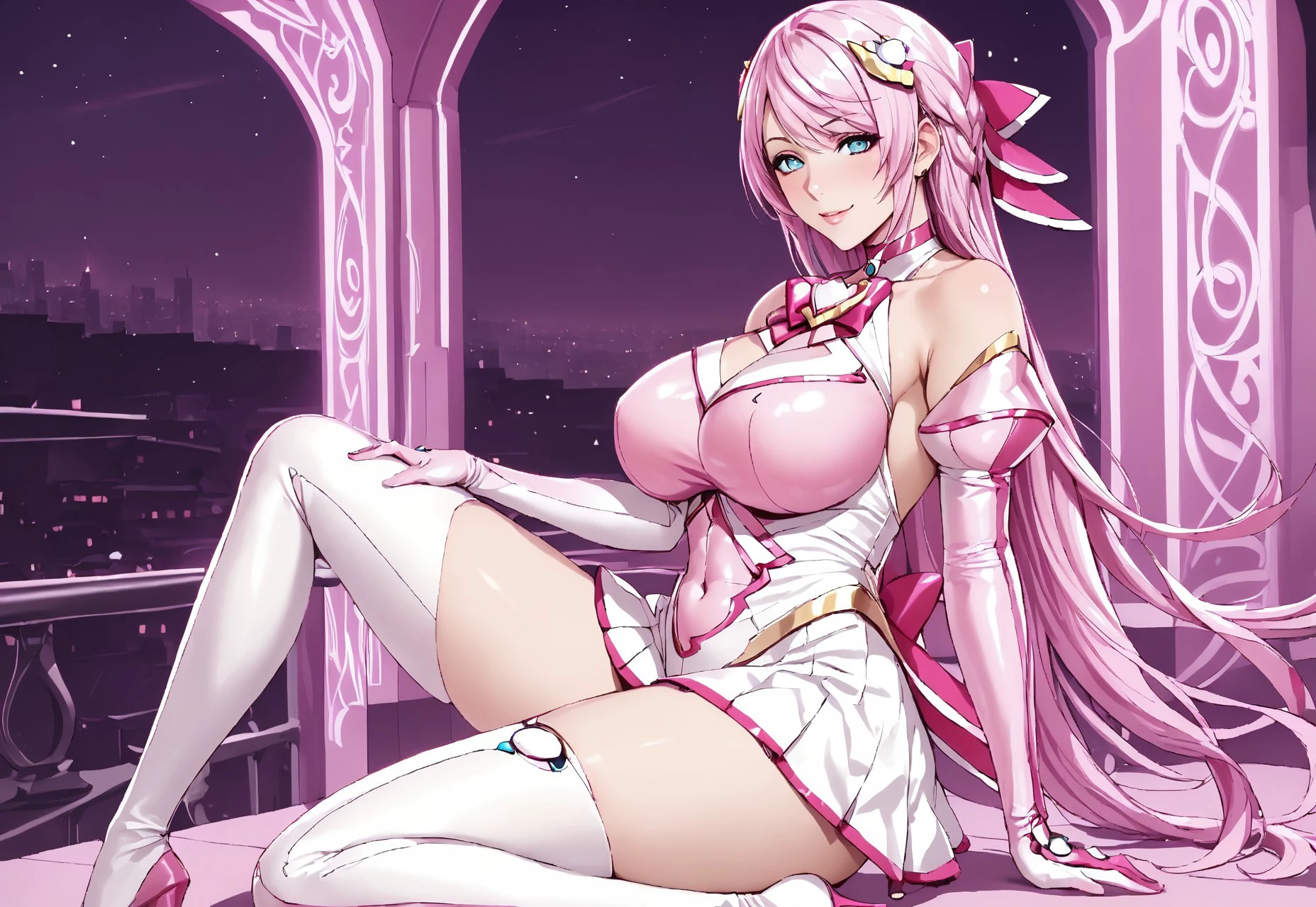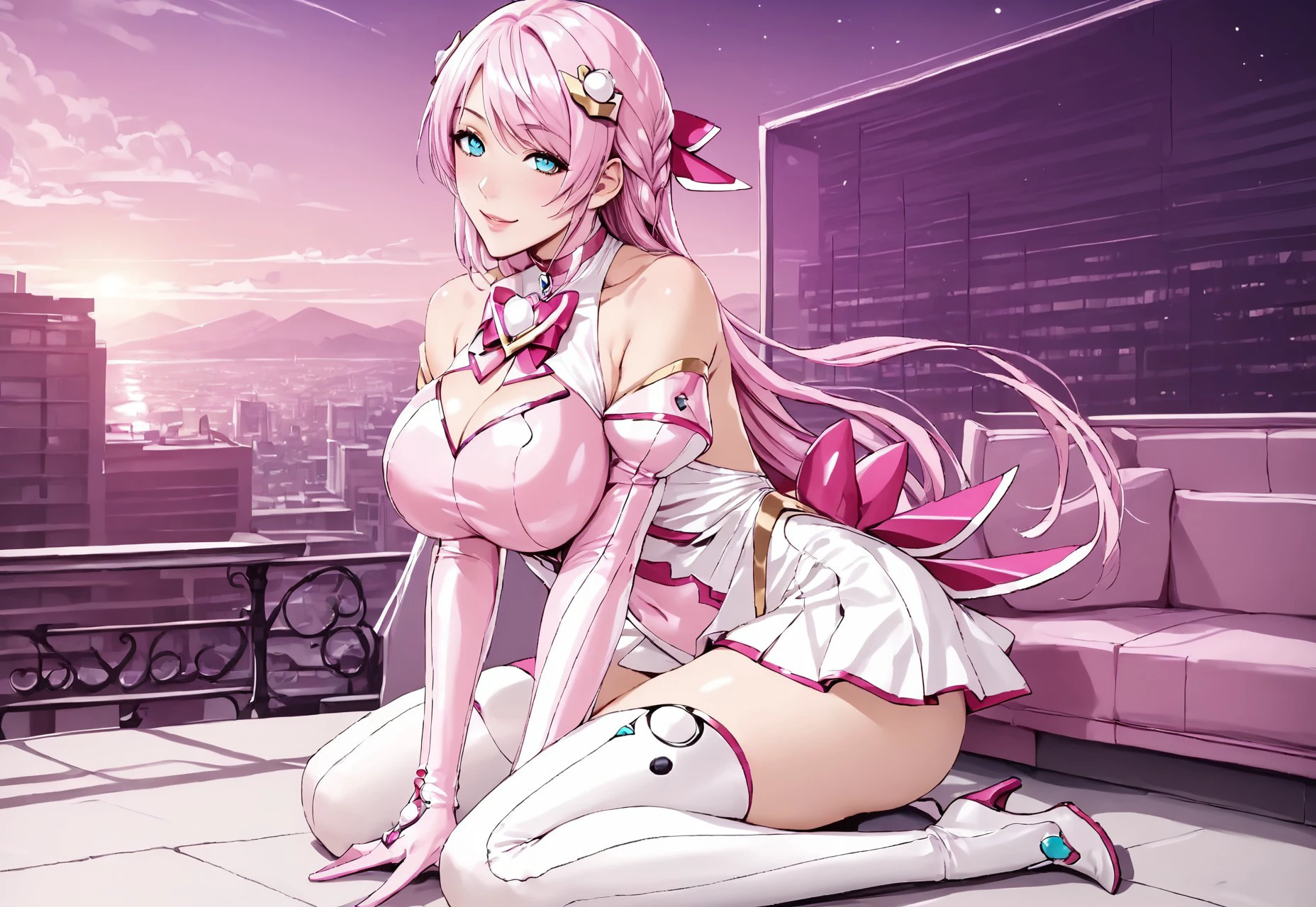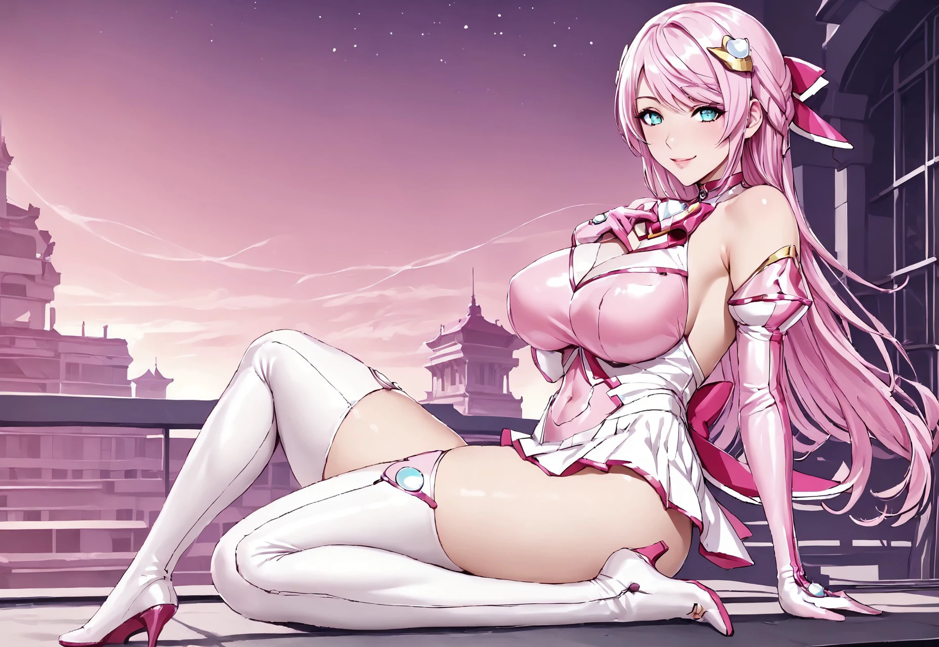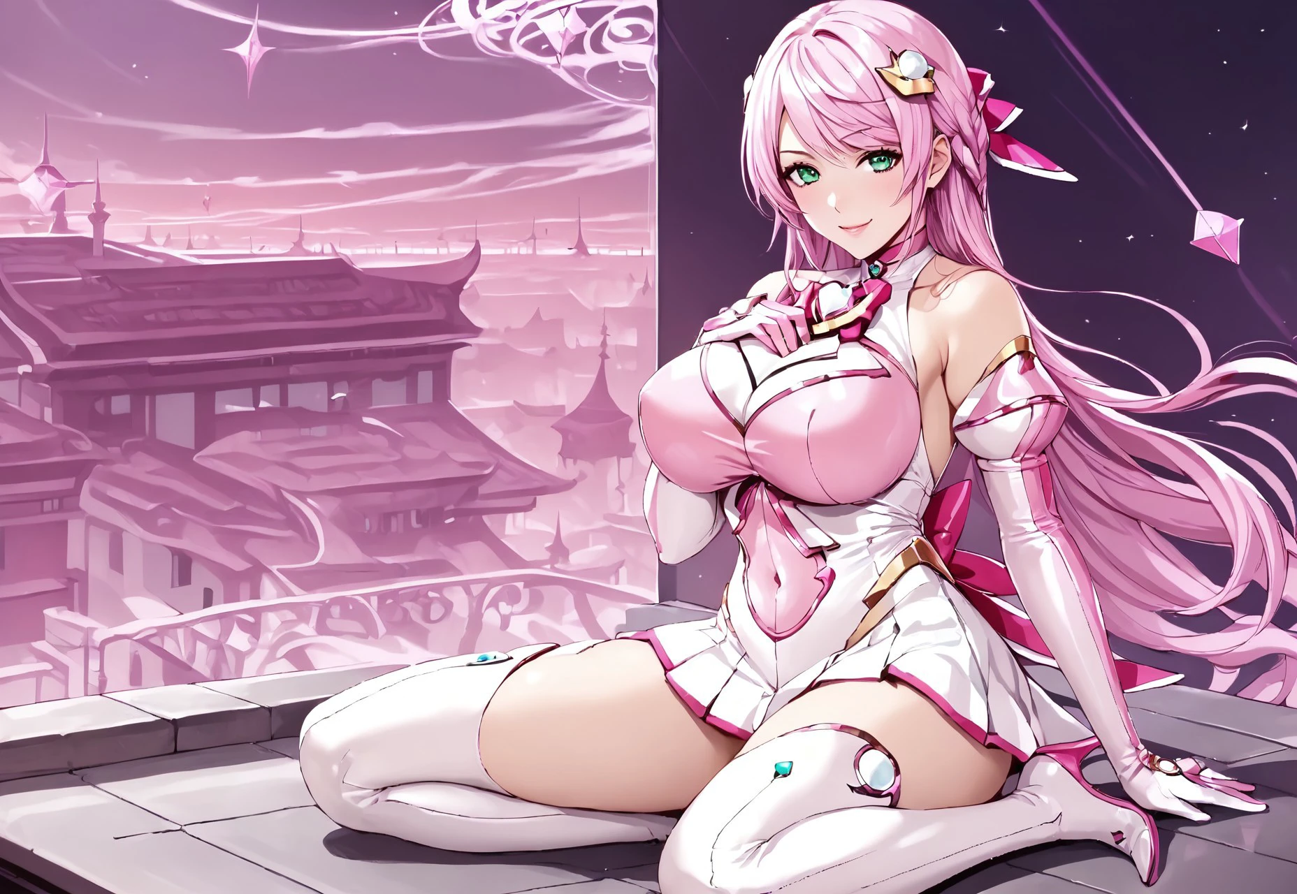 afuruya ketsuno, magical girl, pink hair, long hair, hair ornament, thighhighs, elbow gloves,